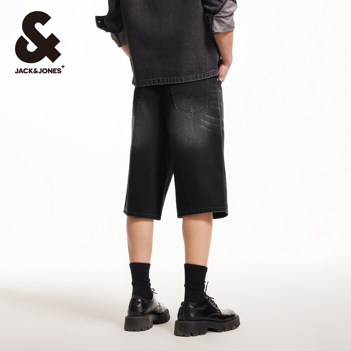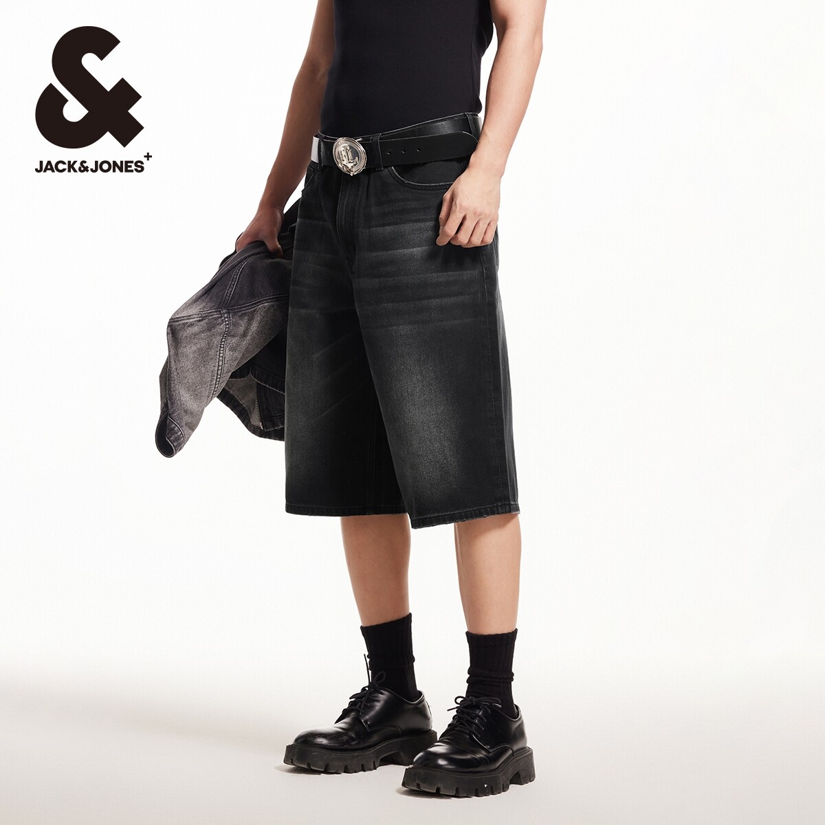 杰克琼斯男装2025年秋季新款宽松廓形潮流牛仔短裤子七八分裤子