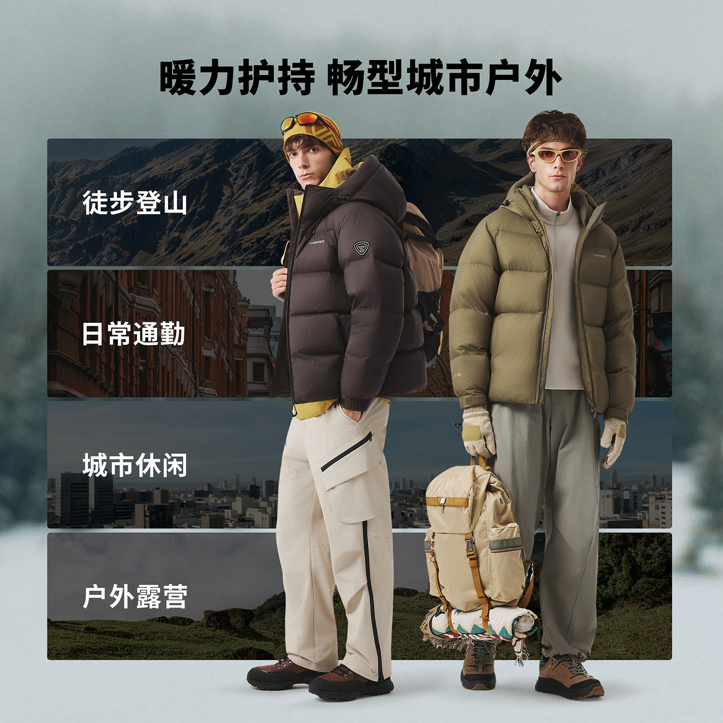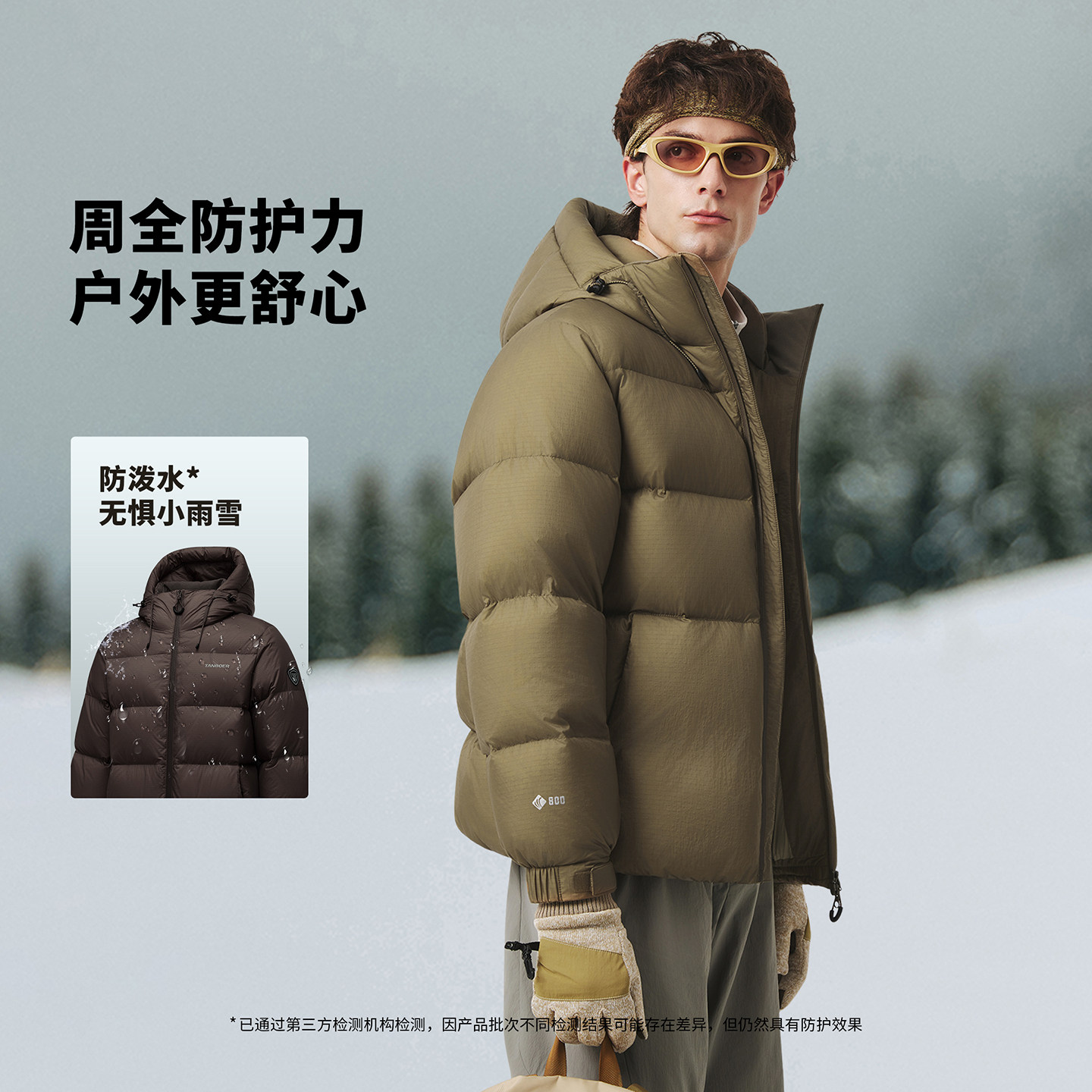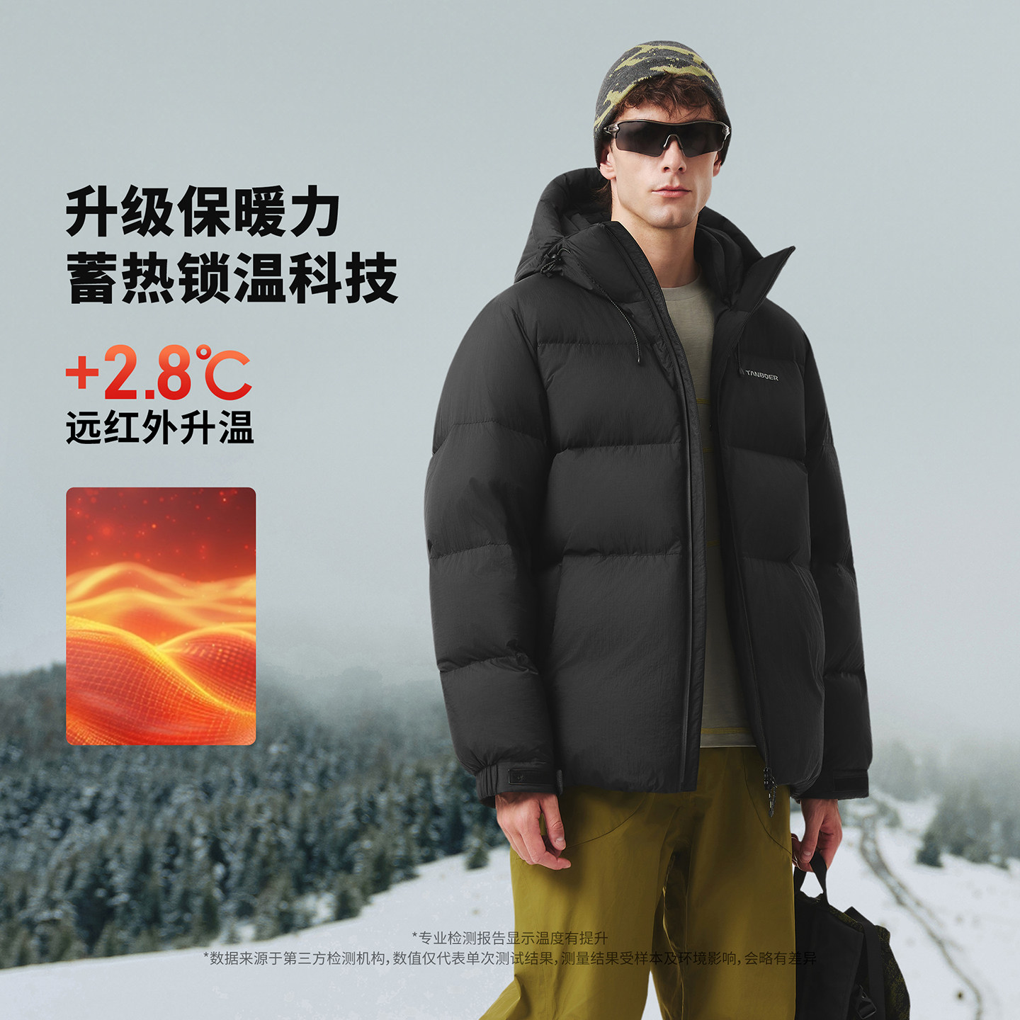 坦博尔25冬季新款男士户外加厚连帽面包服羽绒服短款耐脏登山外套