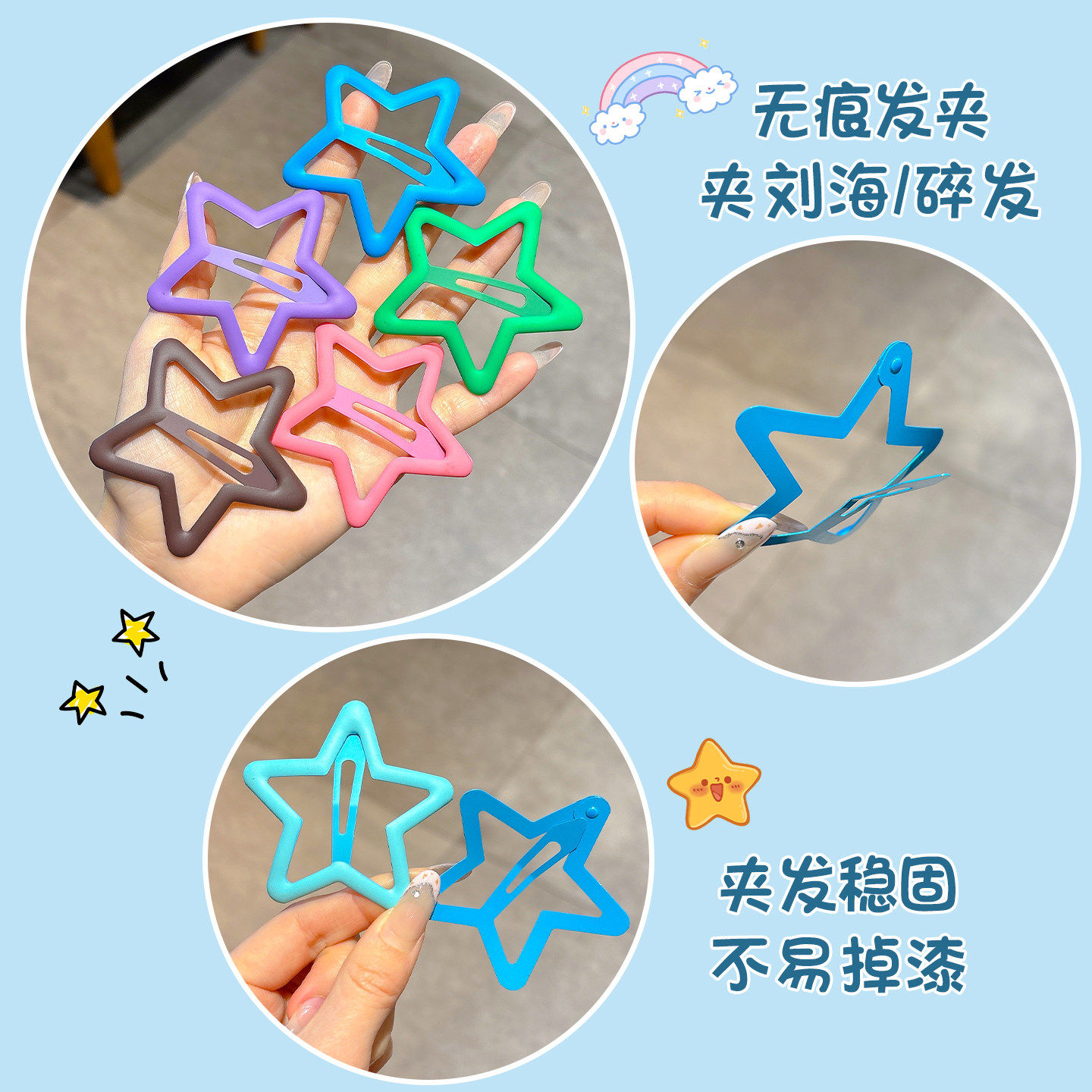 儿童彩色大号五角星发夹女童刘海夹侧边后脑勺碎发卡子不伤发可爱