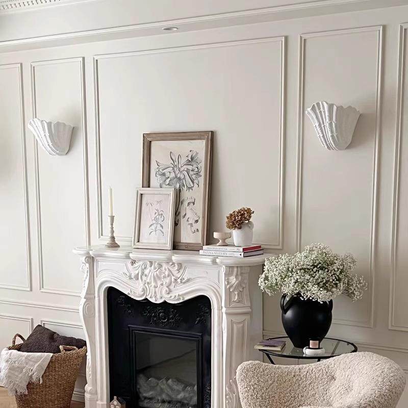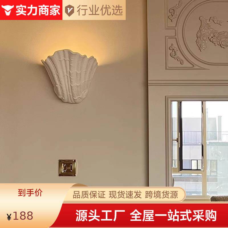 法式贝壳壁灯北欧中古风明装卧室床头灯玄关过道走廊楼梯间石膏灯