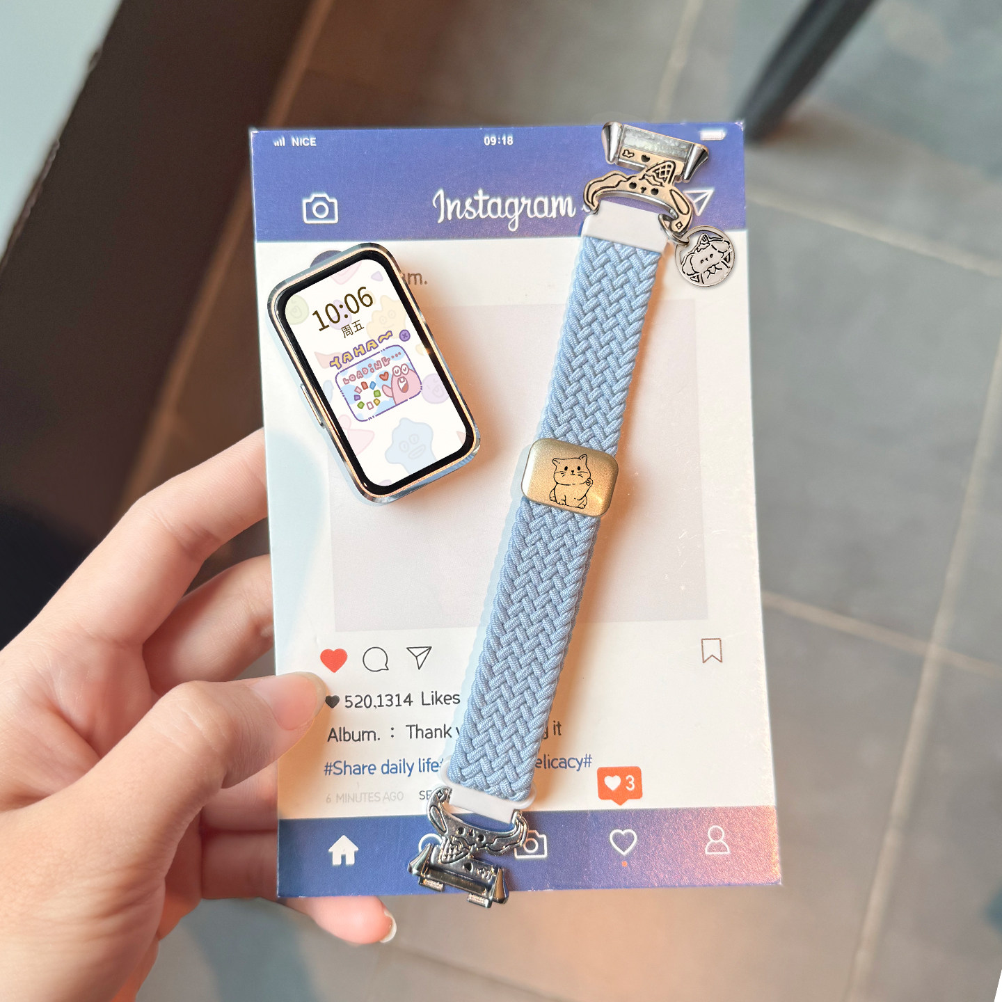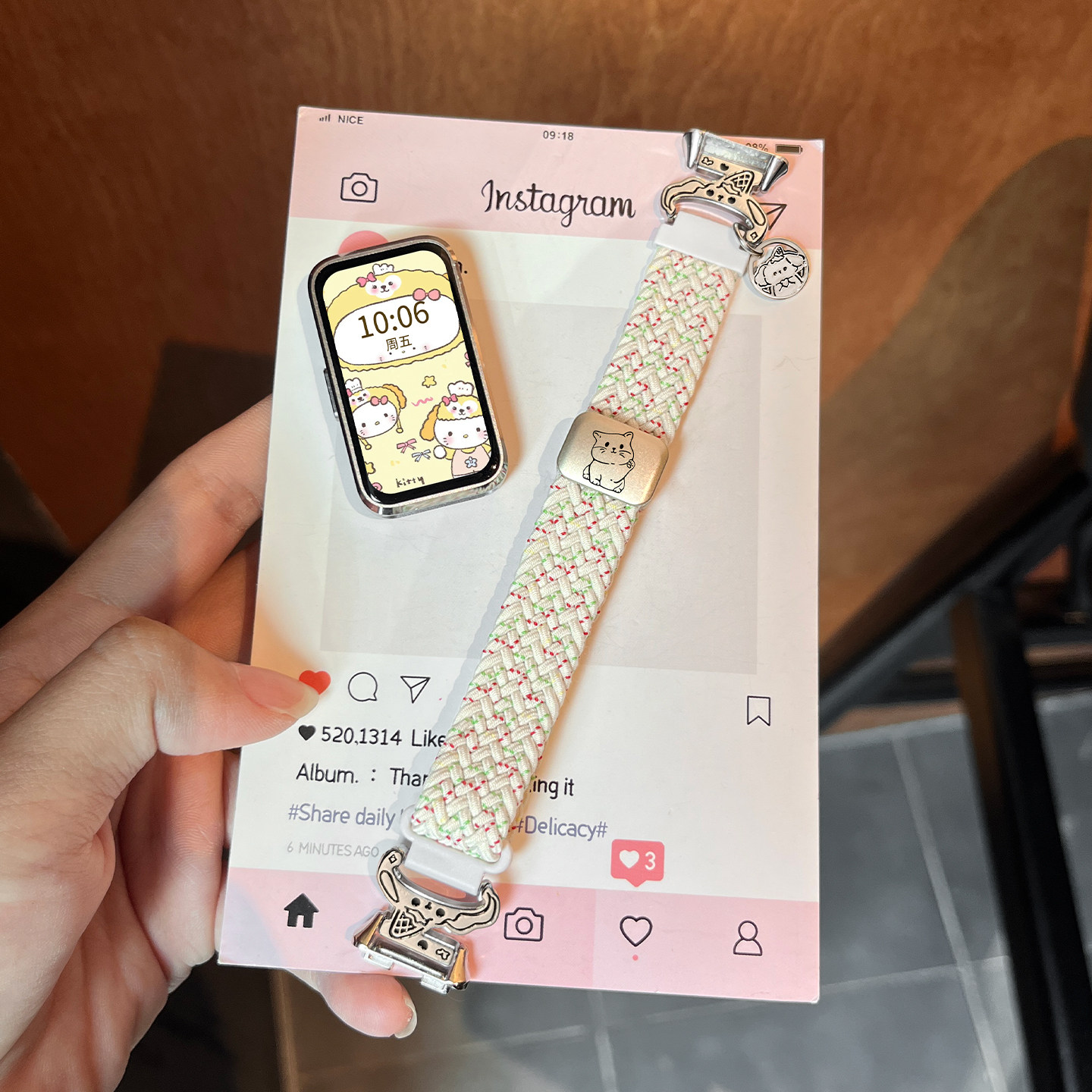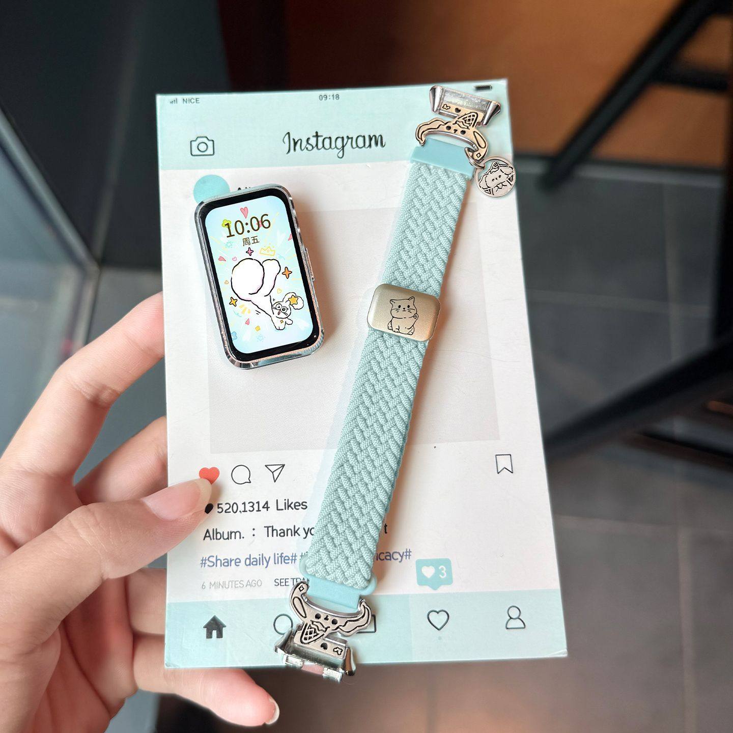 雪糕狗适用华为手环10/9/8表带卡通可爱招财猫7编织磁吸ins风尼龙荣耀手环10百搭红米手环3腕带KeepB5/4腕带2