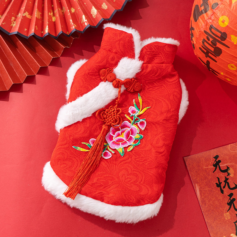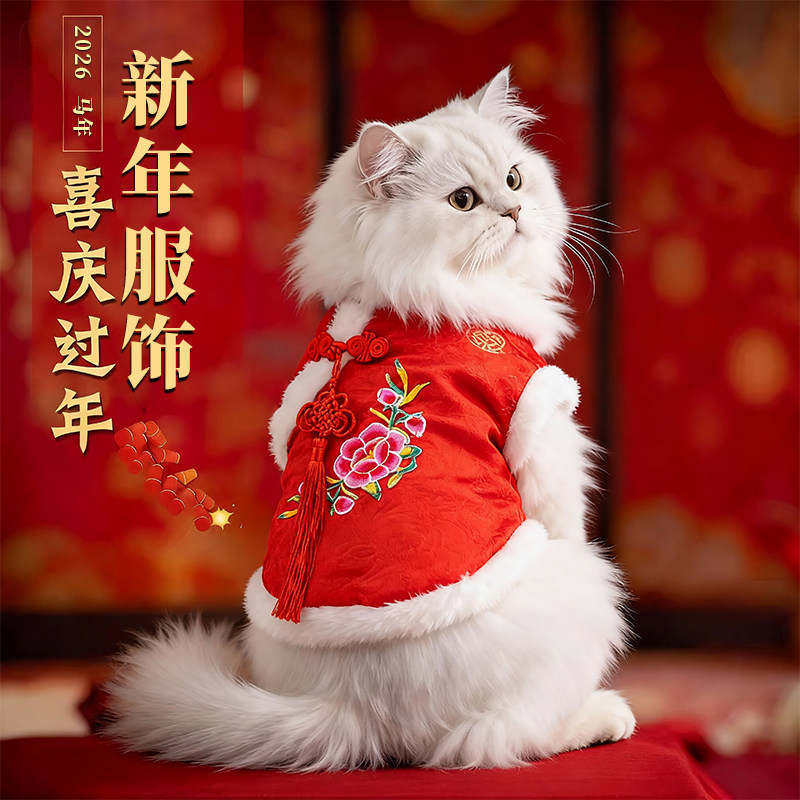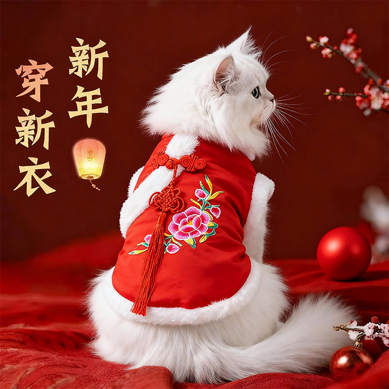 秋冬季中国风猫咪衣服加厚保暖布偶英短刺绣唐装狗狗新年过年服饰