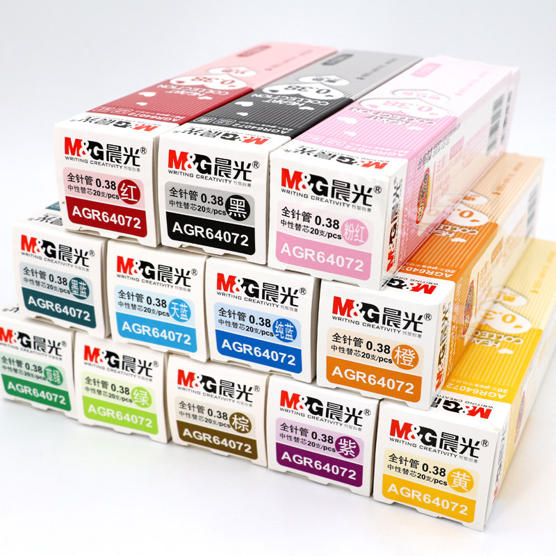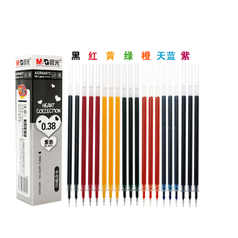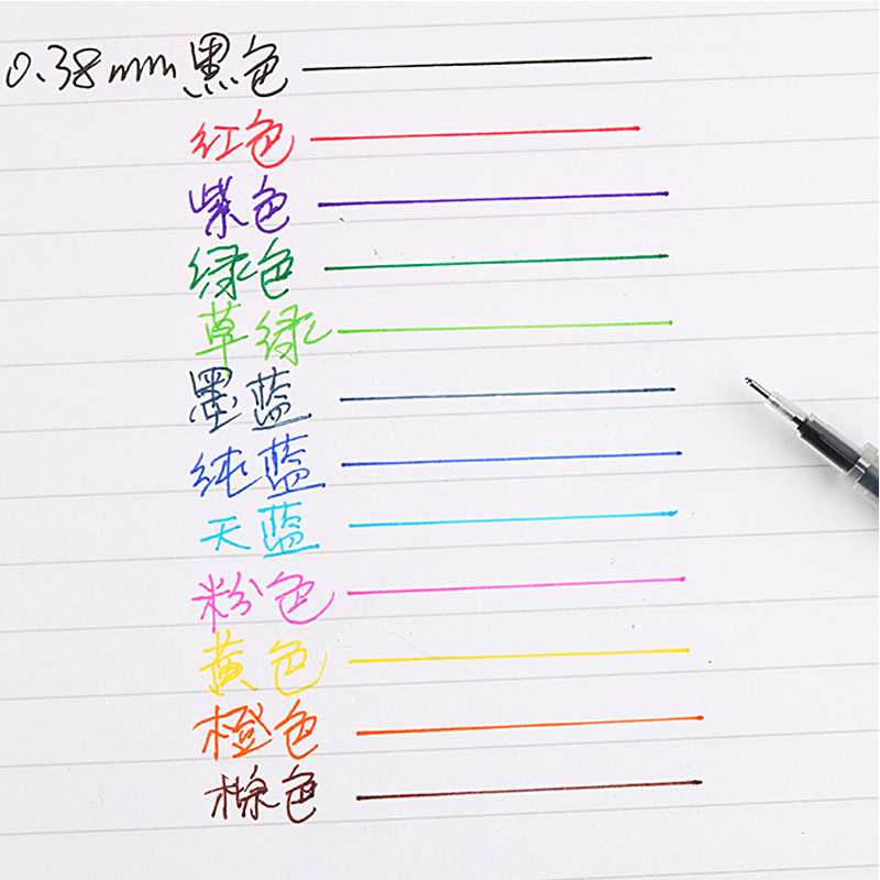晨光彩色中性笔芯0.38mm全针管彩色混装多色水笔替芯学生做笔记可用文具手账笔糖果色新流行12色红色蓝色紫色