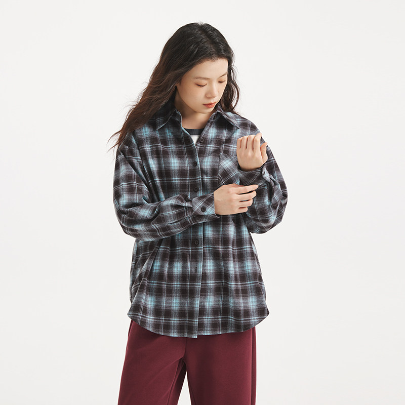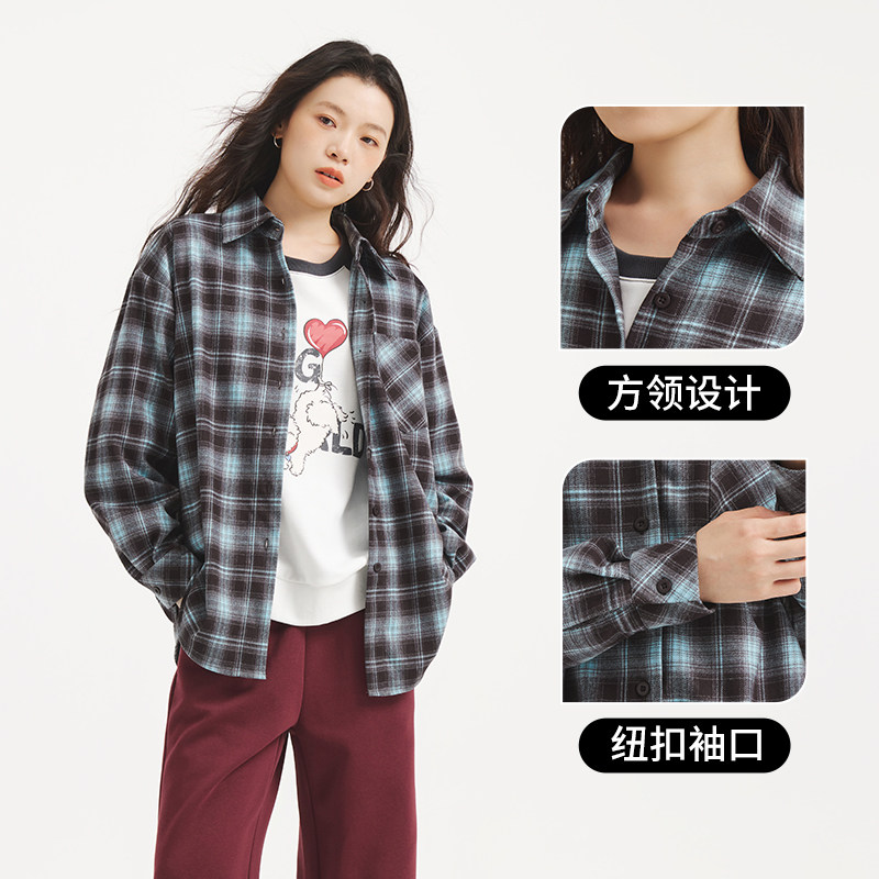热风2025年秋季新款女士复古格纹衬衫舒适休闲百搭长袖简约衬衣