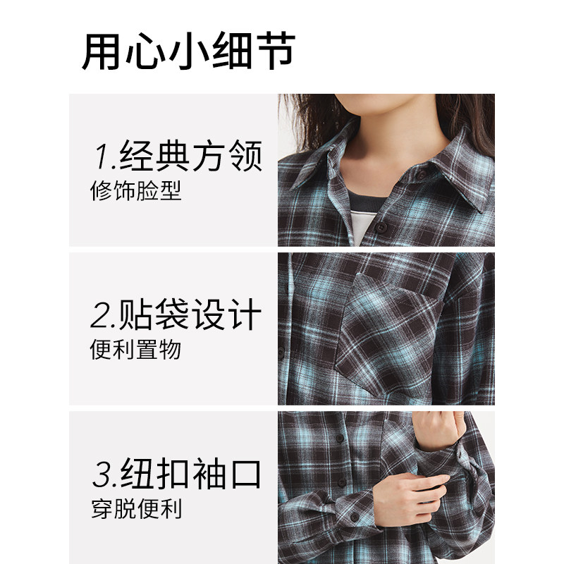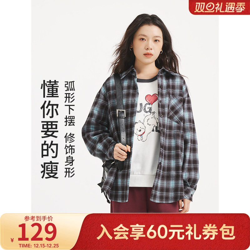 森柔|森马牛仔衬衫女春中长款oversize落肩长袖衣服格纹街头衬衣