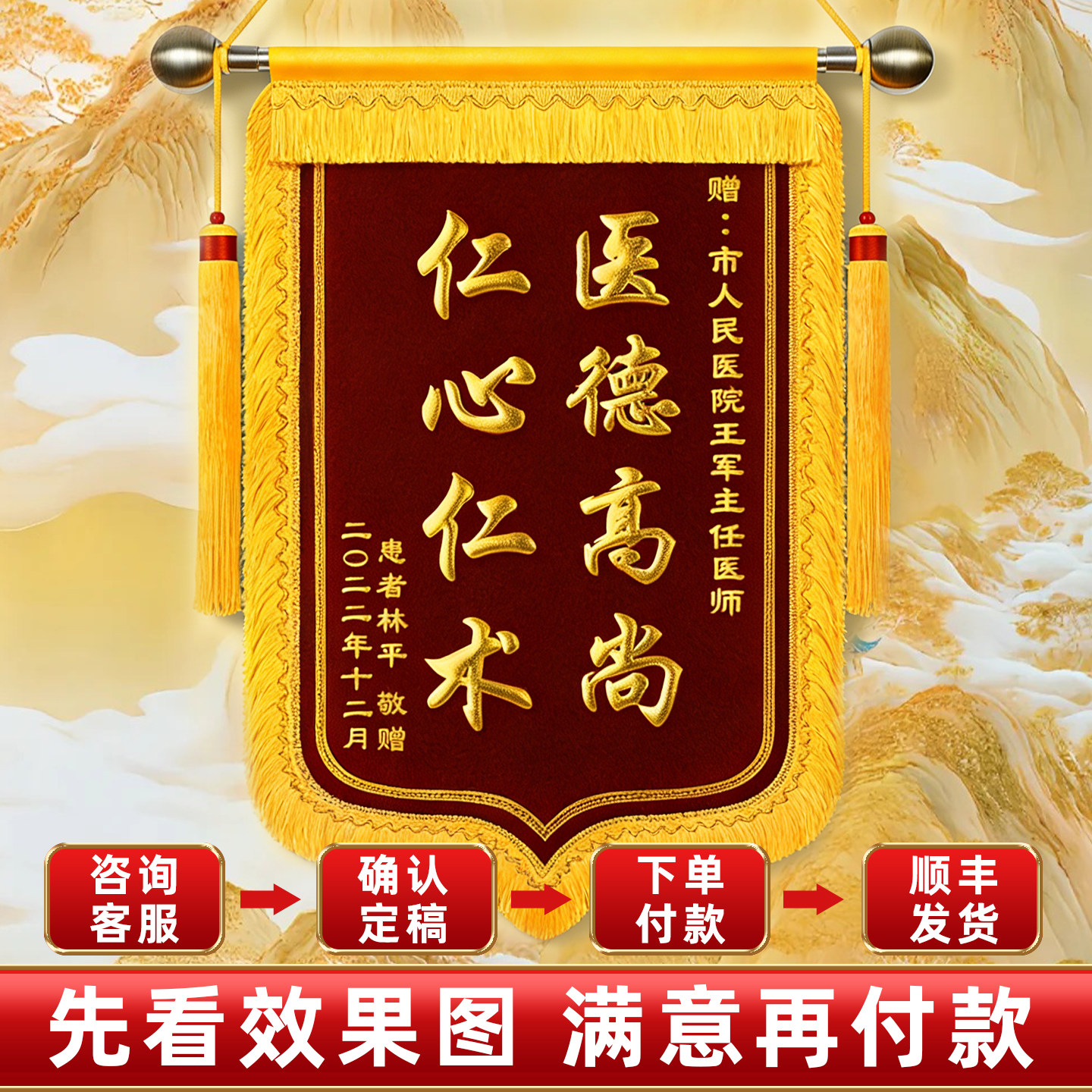 【刺绣锦旗】高档锦旗定制定做感谢医生服务送老师幼儿园护士政府民警月嫂物业律师美容院制作订做一面旌旗
