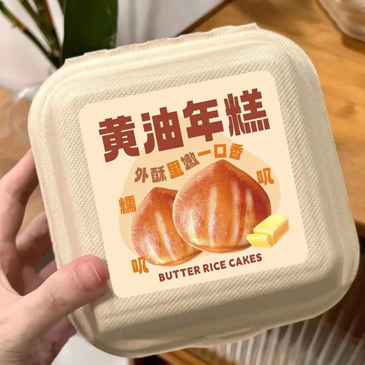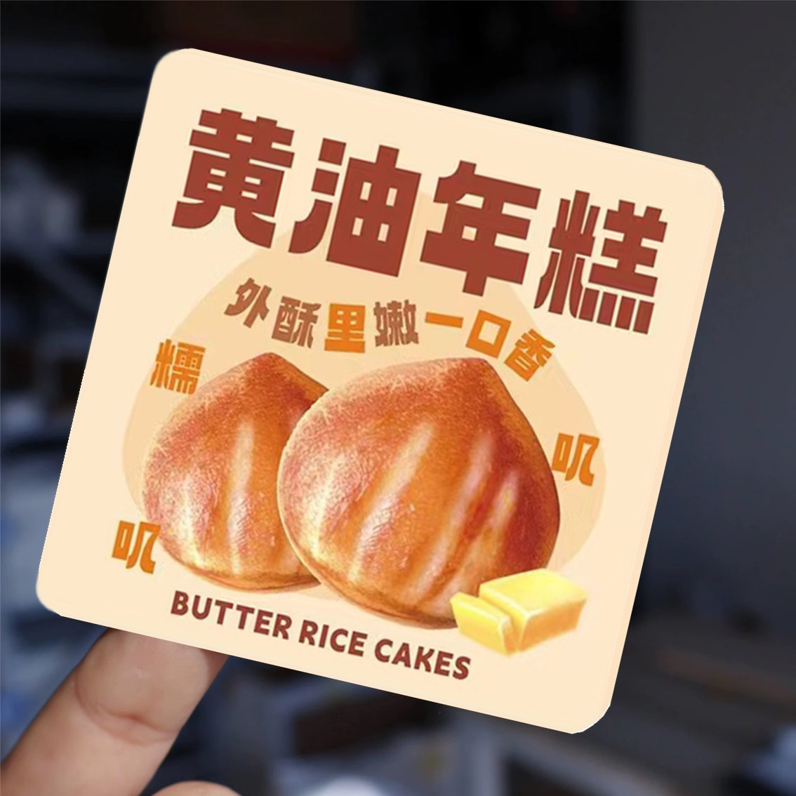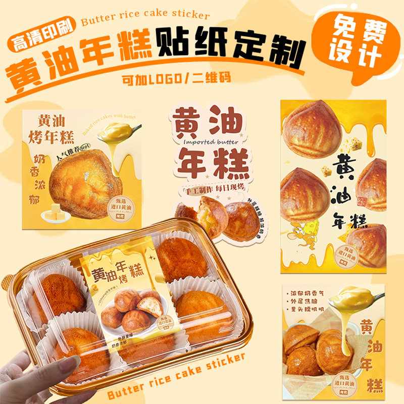 定制黄油年糕贴纸网红创意烘焙甜品面包装饰不干胶包装盒芝士芋泥打包盒可爱封口贴商标广告标签设计长条腰封