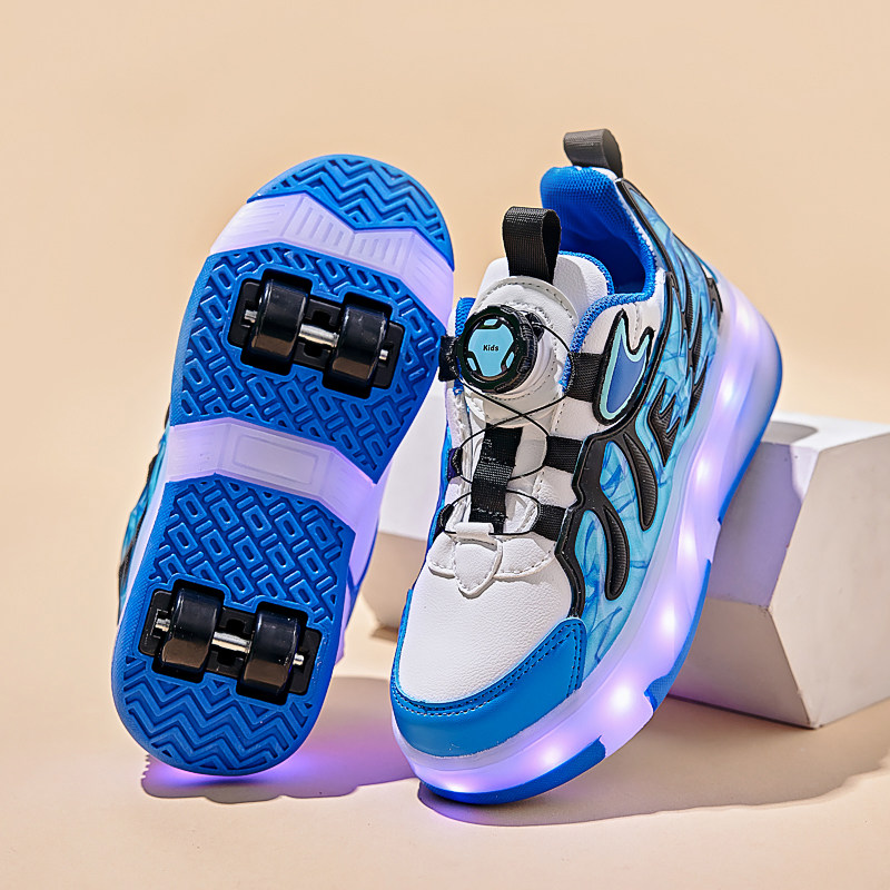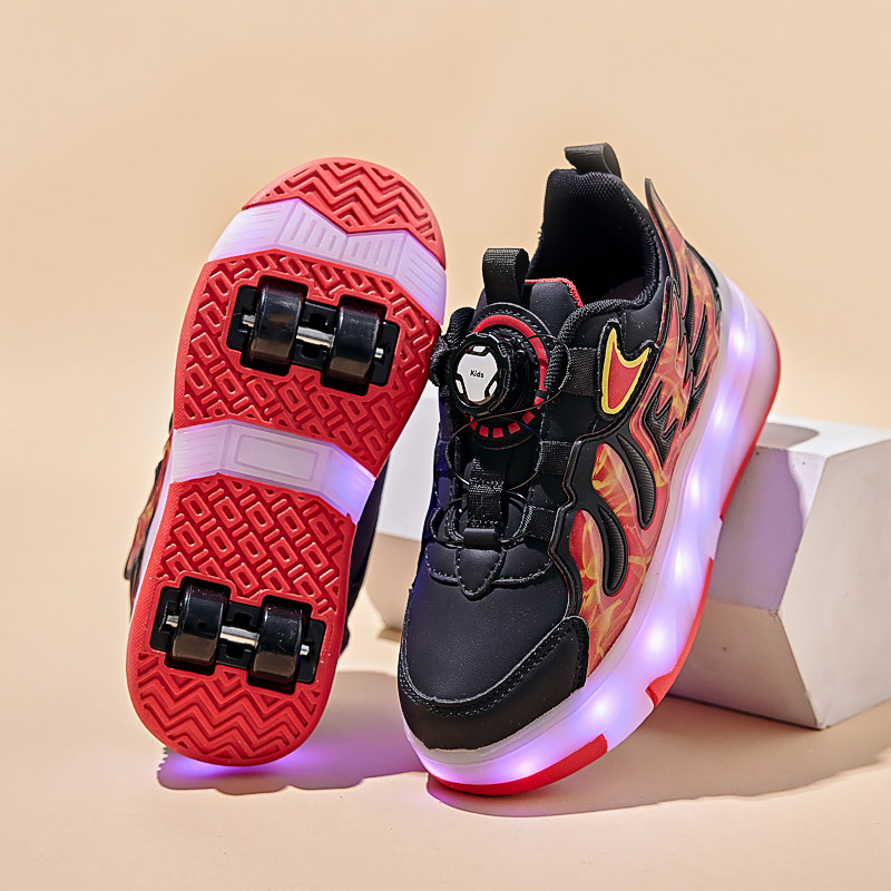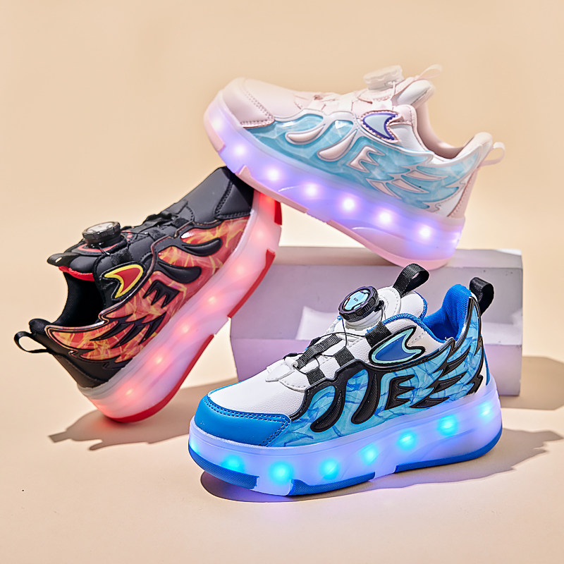 暴走鞋女童春秋季皮面儿童带轮子运动学生隐形轮滑鞋发光滑轮四轮
