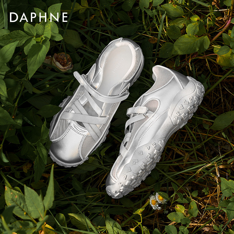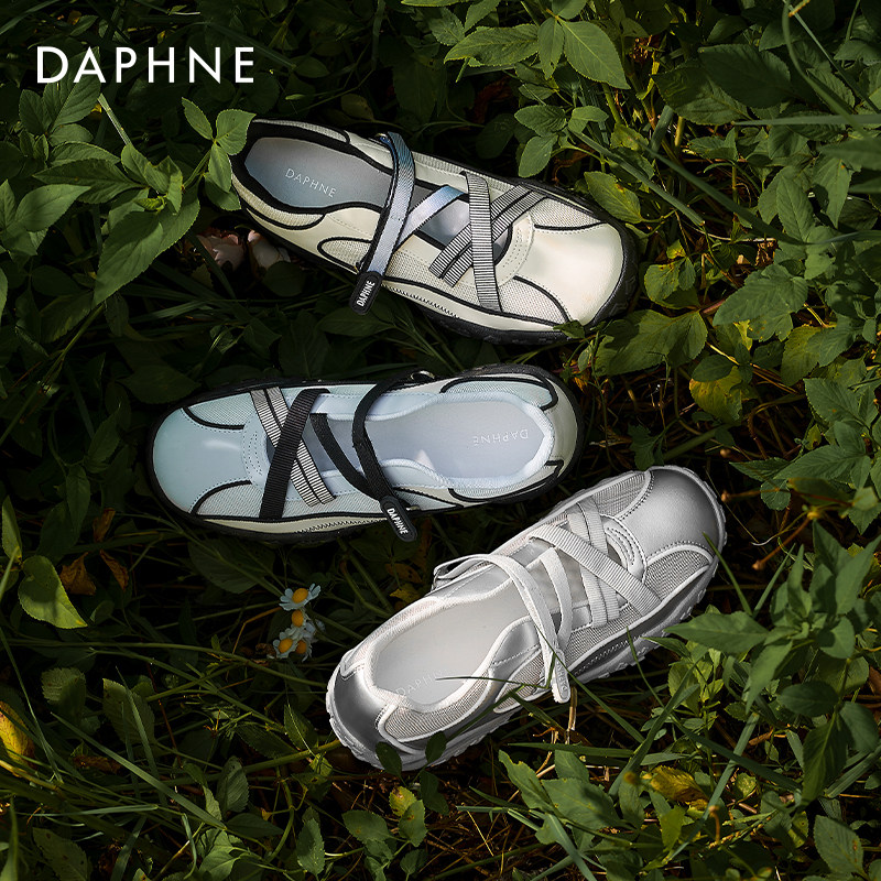 达芙妮芭蕾德训鞋女运动凉鞋2026新款银色单鞋夏季透气玛丽珍鞋女