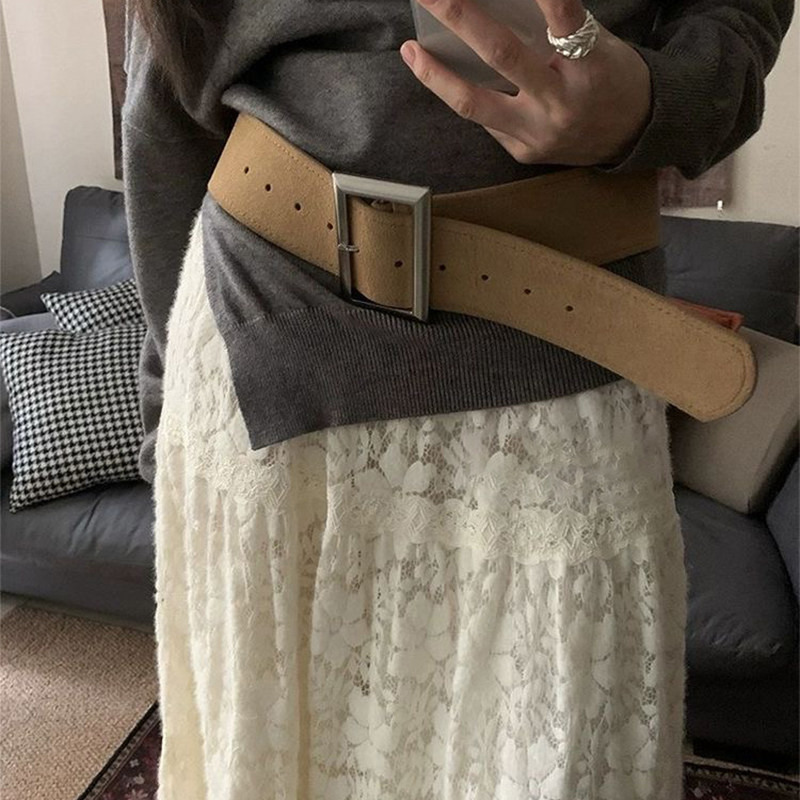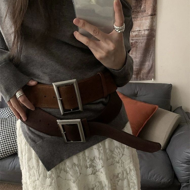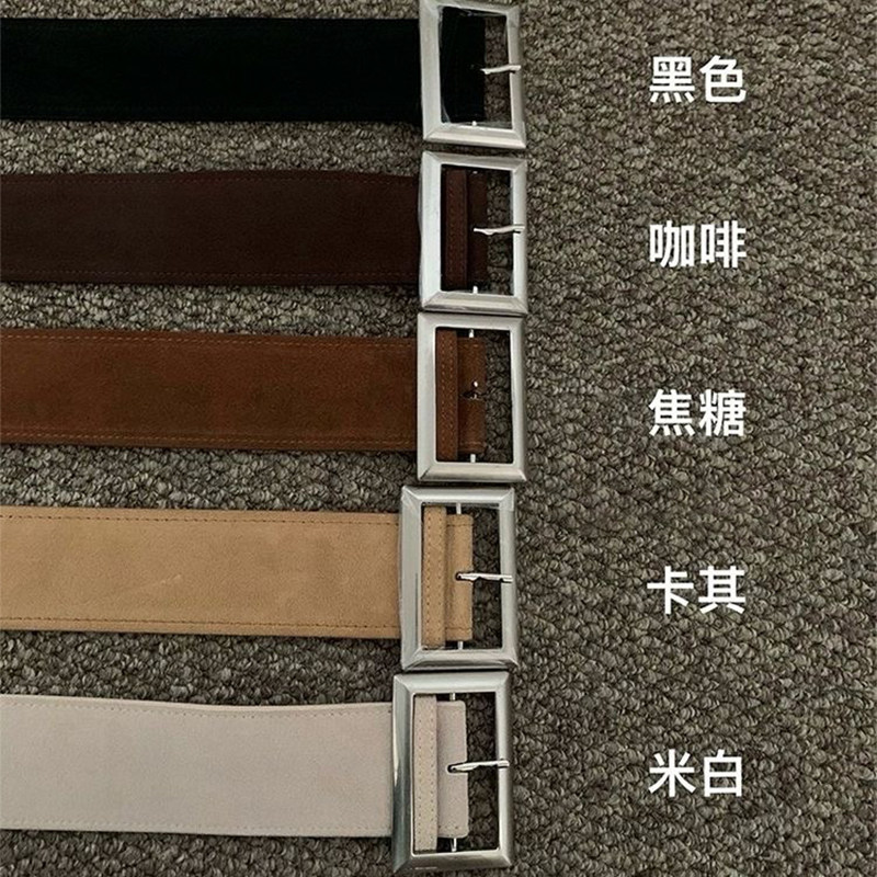 韩系新款麂皮绒皮带2025秋冬季高级简约色系百搭中古风宽腰带腰封