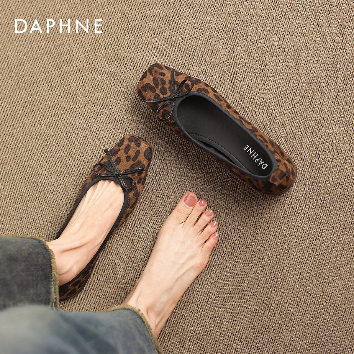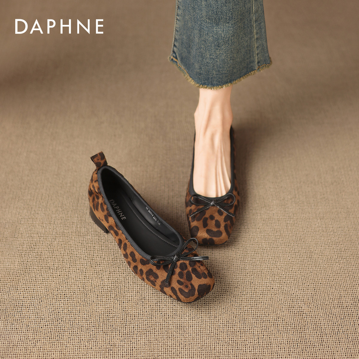 达芙妮豹纹单鞋女2026新款春粗跟不累脚皮鞋浅口瓢鞋法式通勤女鞋