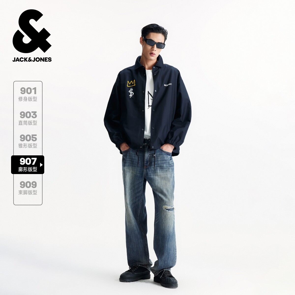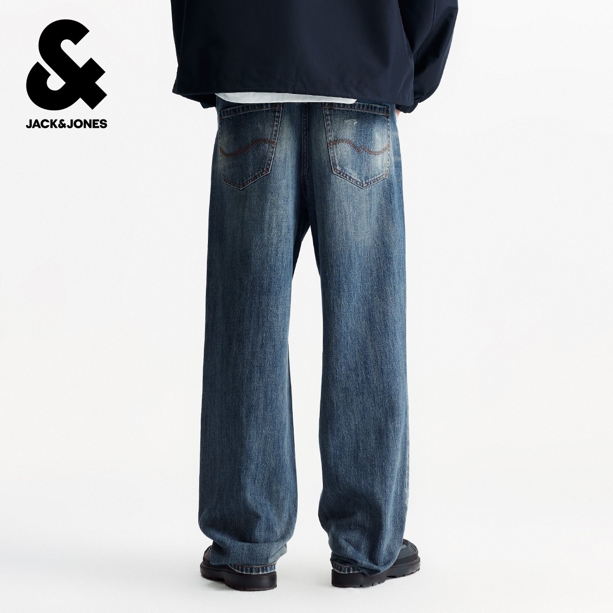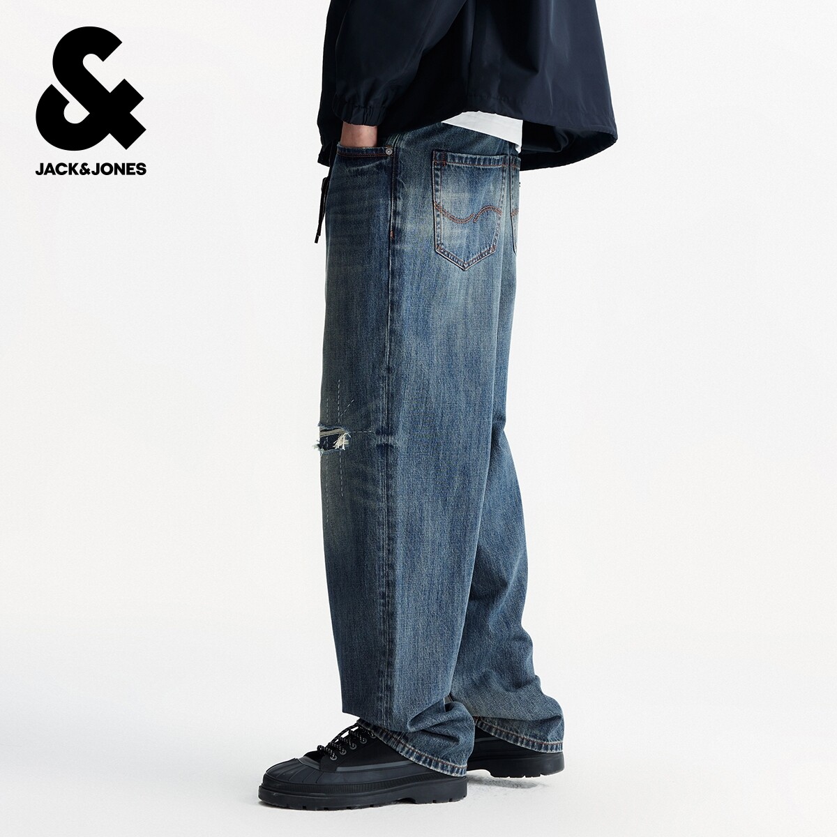 907杰克琼斯男装春季新纯棉做旧磨破廓形牛仔裤阔腿裤长裤子男款