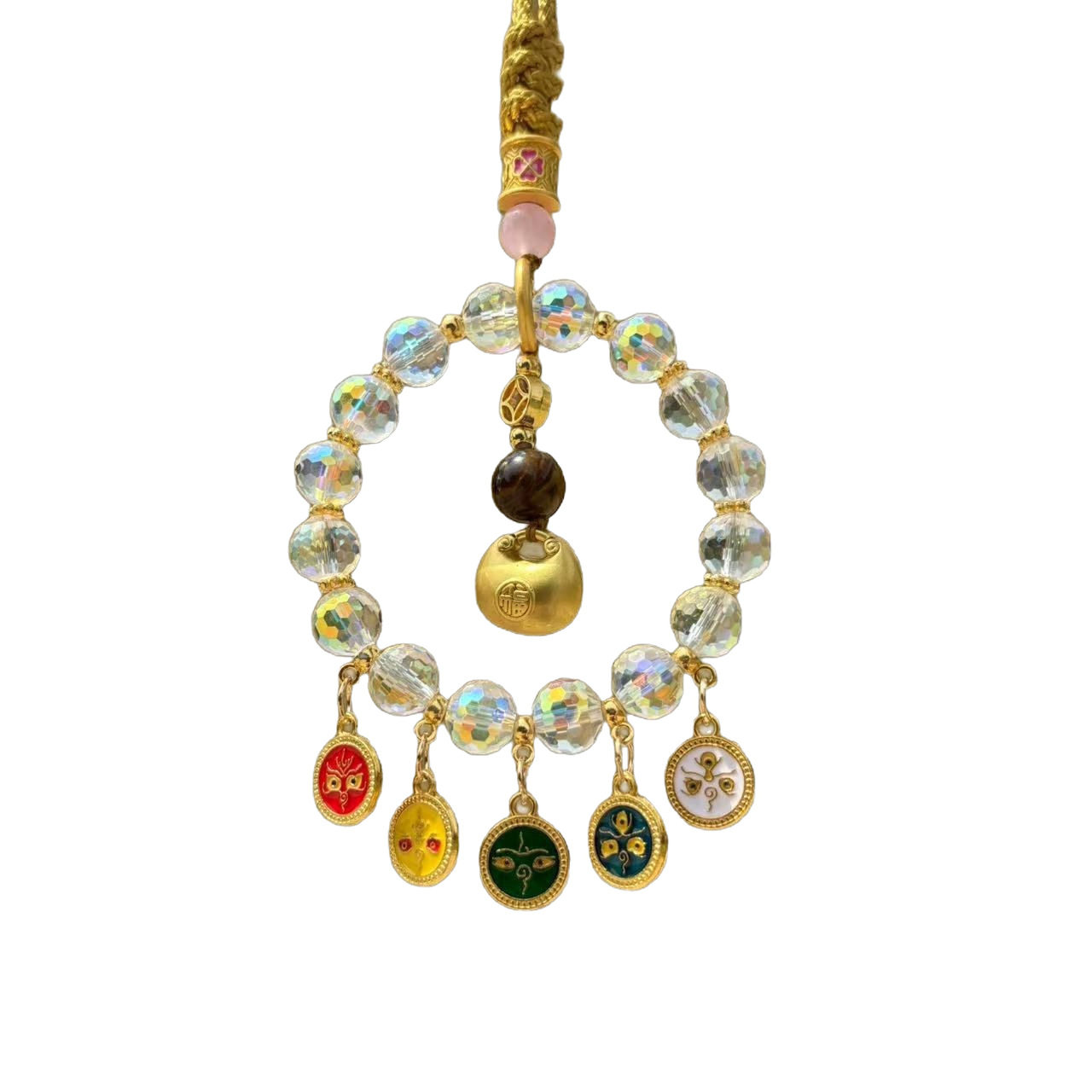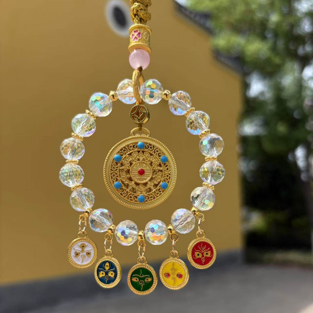 五路财神车载挂件五彩水晶平安锁包包挂件中国风饰品