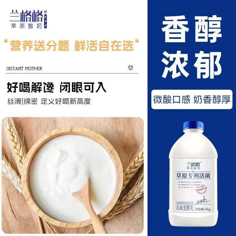 兰格格草原1kg专利活菌酸奶干酪风味发酵乳低温瓶装冷藏家用