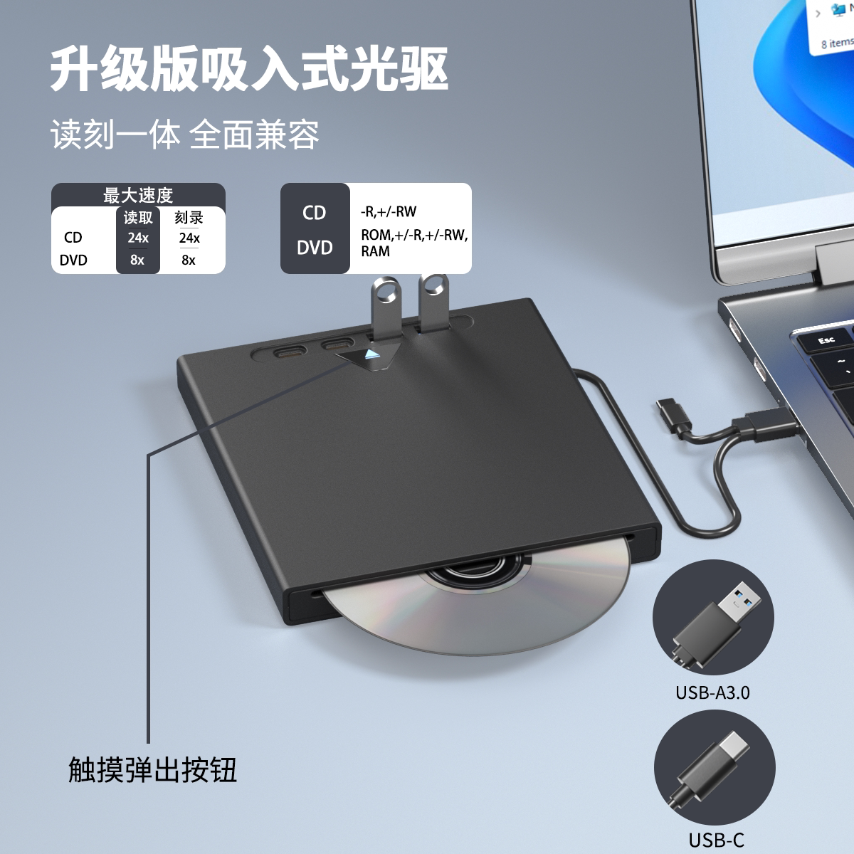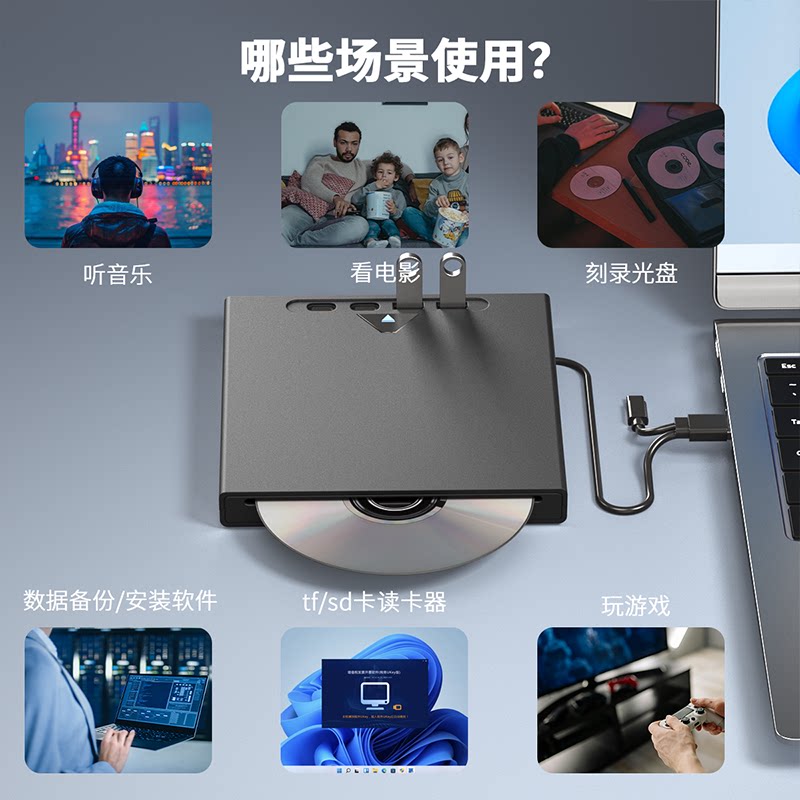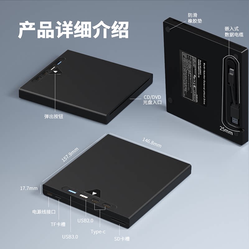USB3.0外置光驱七合一CD/DVD-RW多功能多接口电脑光驱刻录机