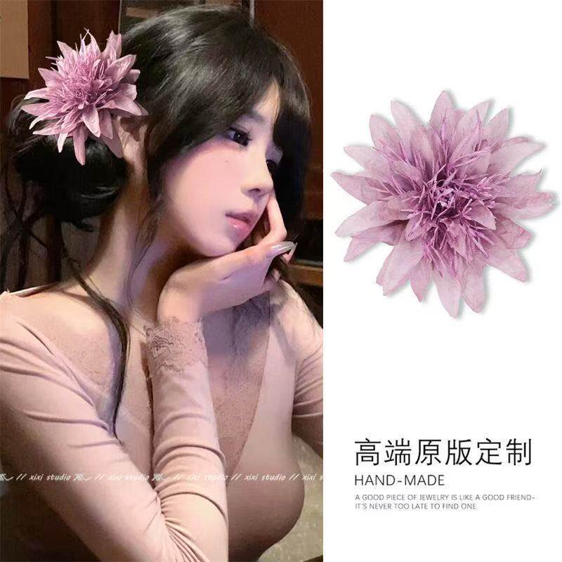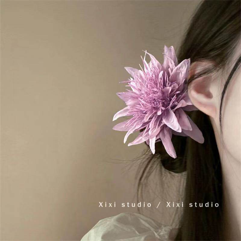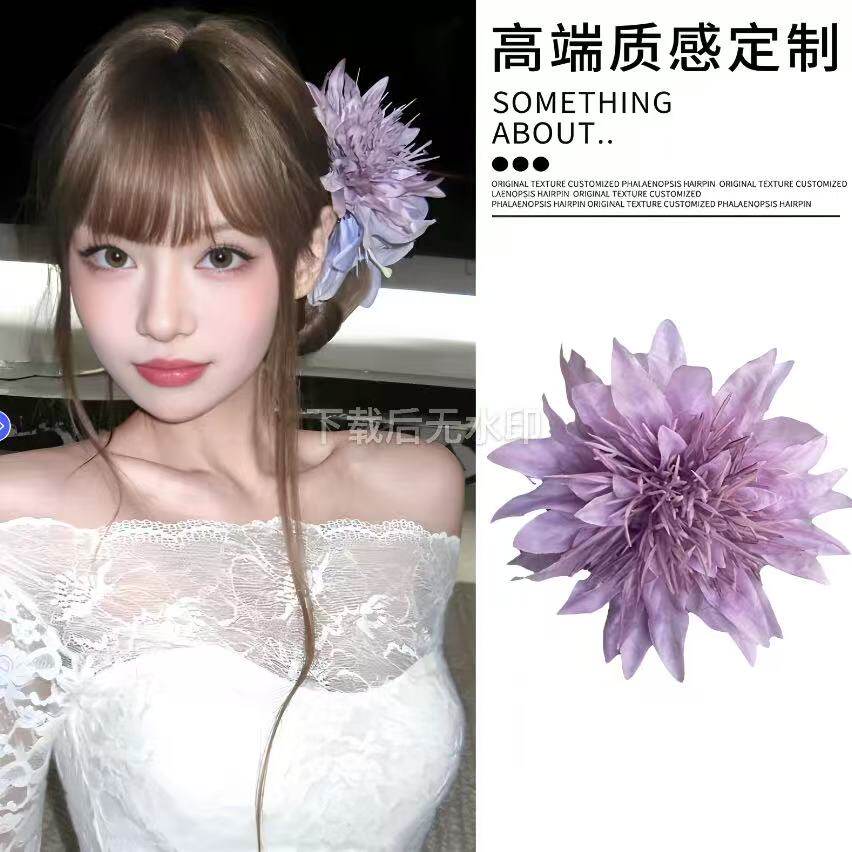 超仙紫色海胆花发夹海氛围感对镜拍仿真花朵头饰盘发器夹子女新款