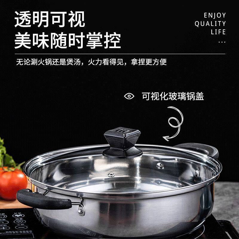 加厚不锈钢火锅专用锅泡面清汤锅家用火锅盆带盖通用
