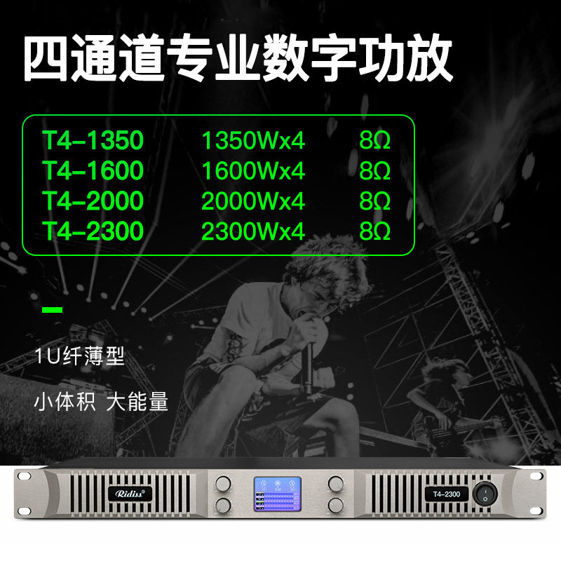Ridiss1U大功率数字功放舞台演出酒吧派对房会议室婚庆后级放大器
