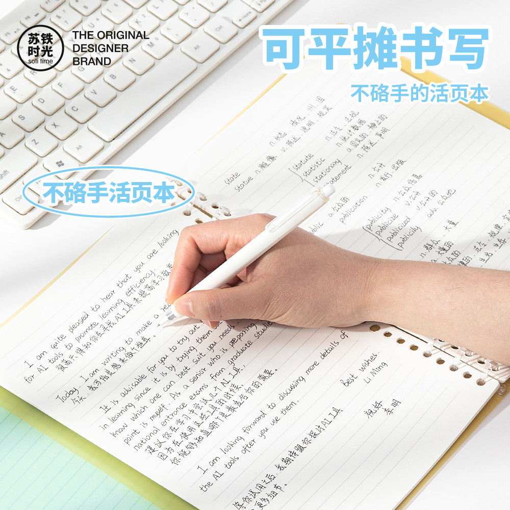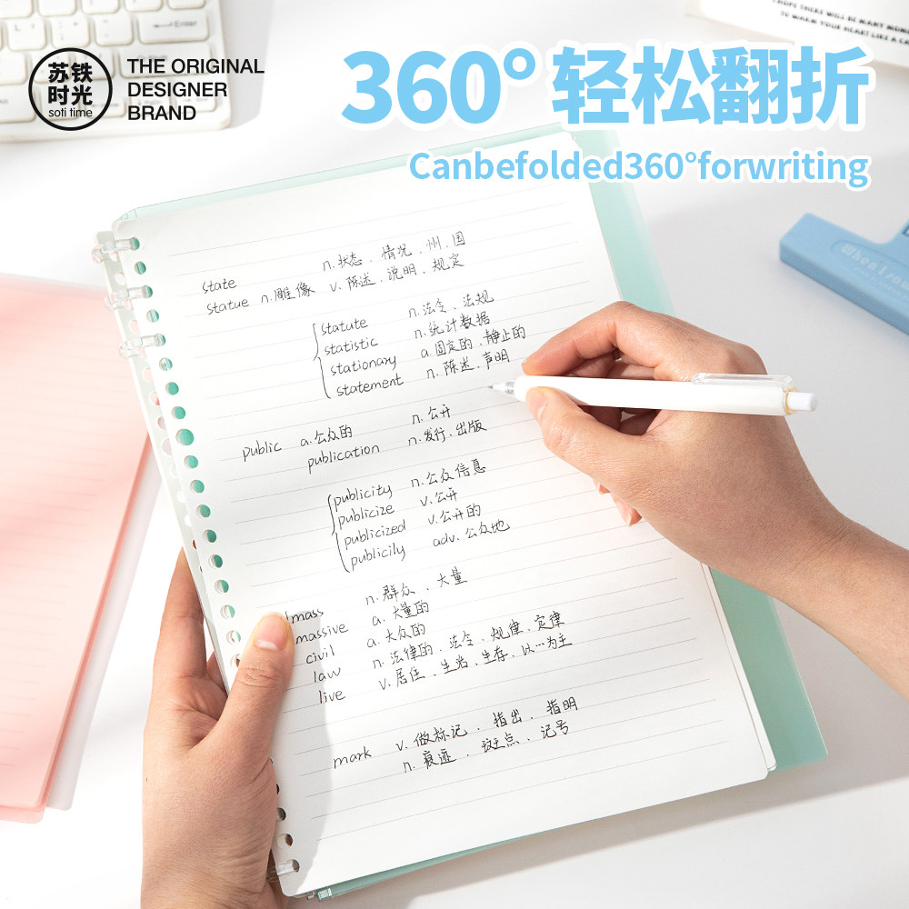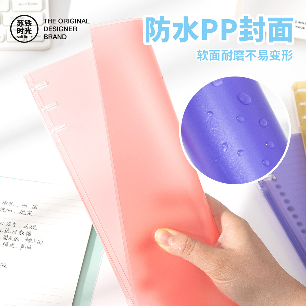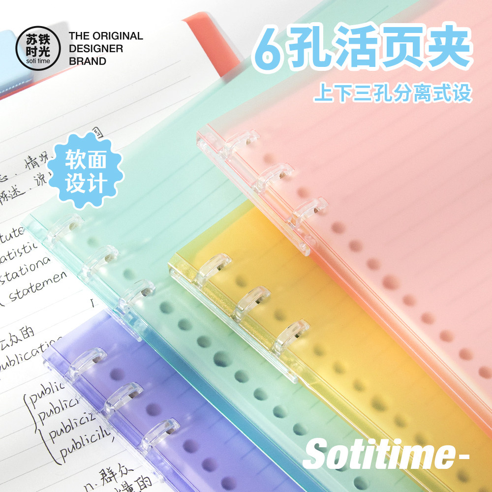 苏铁时光旗舰店不硌手活页本6孔b5糖果色软面可拆卸外壳笔记本本子学生记事本考研活页装订透明冰透彩色
