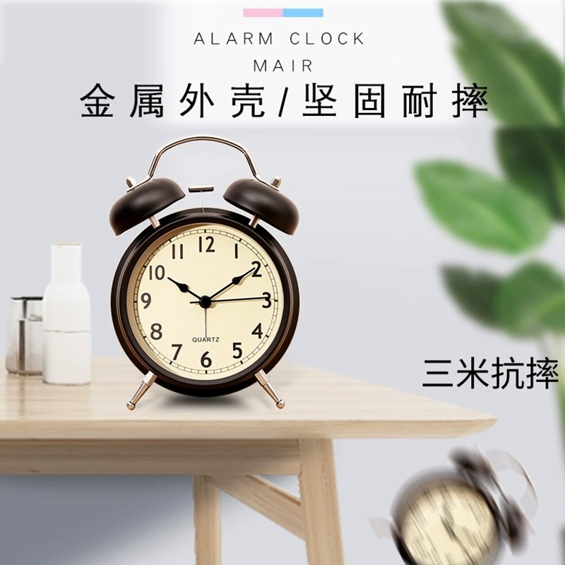 机械闹钟学生专用起床神器闹铃儿童男孩老式复古静音声音金属简单
