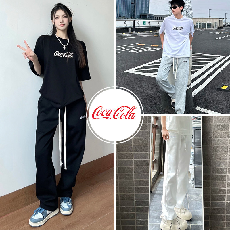Coca-Cola/可口可乐休闲裤男春秋裤子刺绣卫裤运动直筒裤拖地长裤