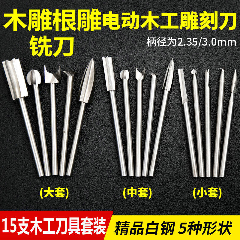 电动木雕核雕根雕刻刀头白钢铣刀套装电磨木工雕刻刀打磨镂空工具