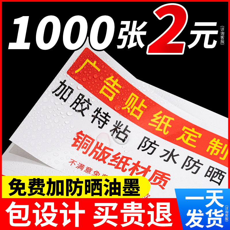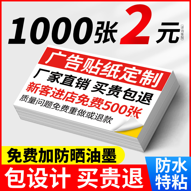 不干胶广告贴纸定制作自粘贴标签订做商标二维码打印覆膜防水防晒可粘名片卡片户外背胶海报墙贴小广告自粘贴