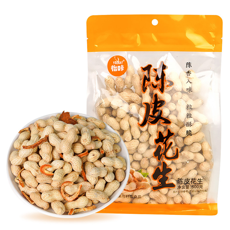 怡咔陈皮花生500g散装坚果炒货新货下酒菜带壳花生米休闲零食