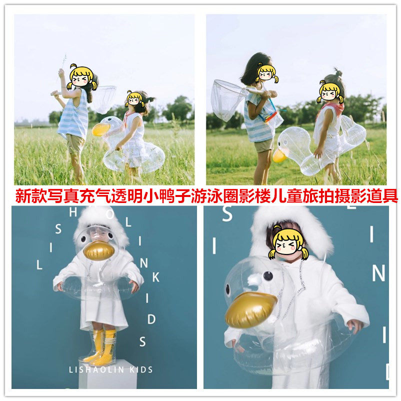 儿童拍照道具 网红宝宝充气透明小鸭子 游泳圈 影楼潮童写真摄影