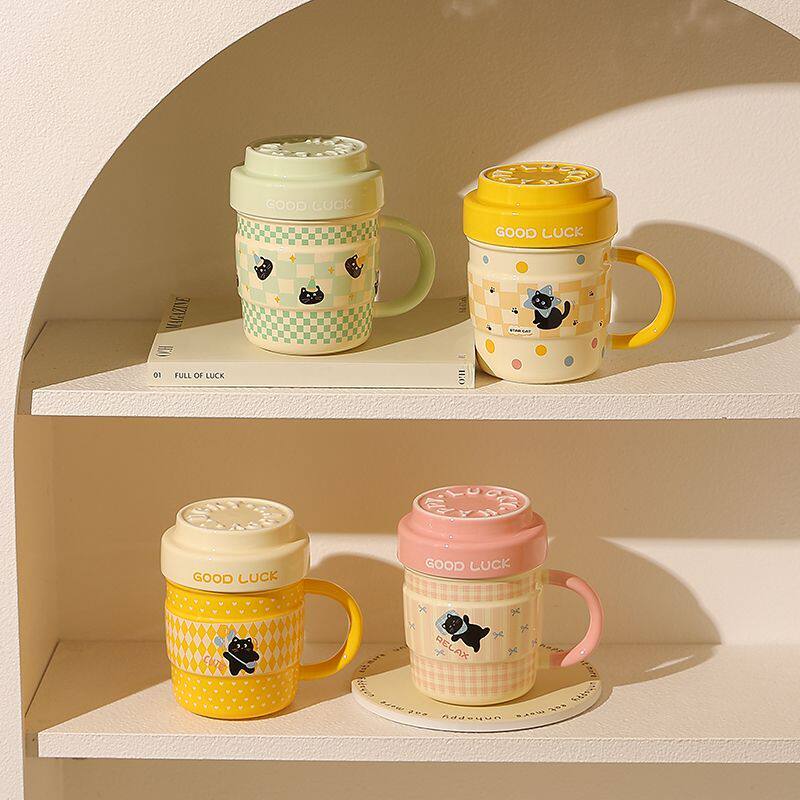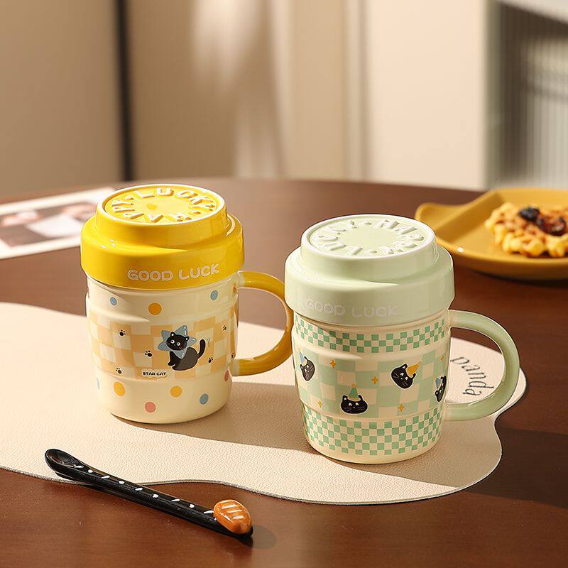 可爱马克杯办公室带盖陶瓷水杯女生高颜值情侣杯小猫杯子伴手礼物