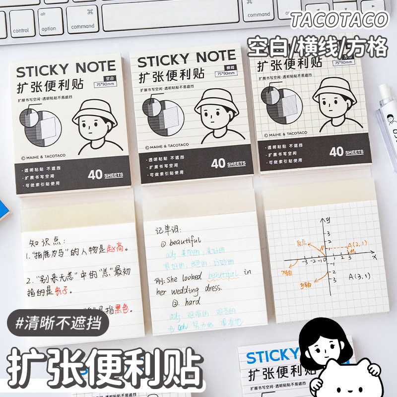 TACOTACO扩张便利贴任意贴不遮挡可折叠学生考研粘性便签便利贴记录便签贴无痕便利贴记笔记贴