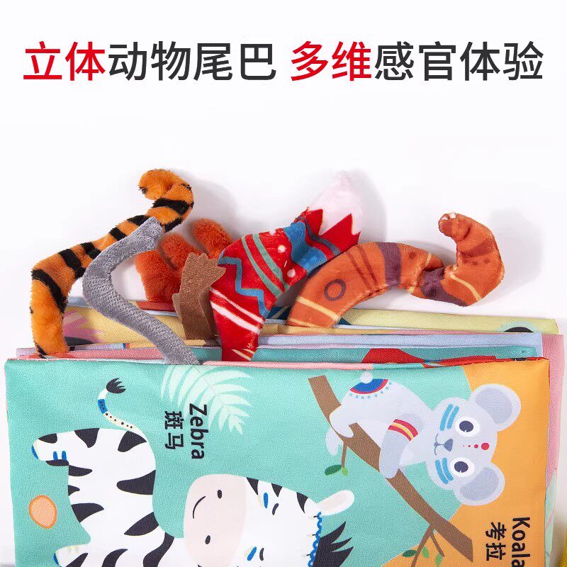 婴儿早教布书撕不烂可啃咬立体尾巴手撕书0-1岁宝宝6认知益智玩具