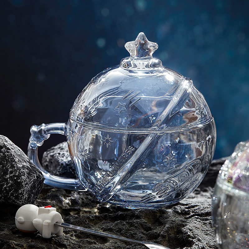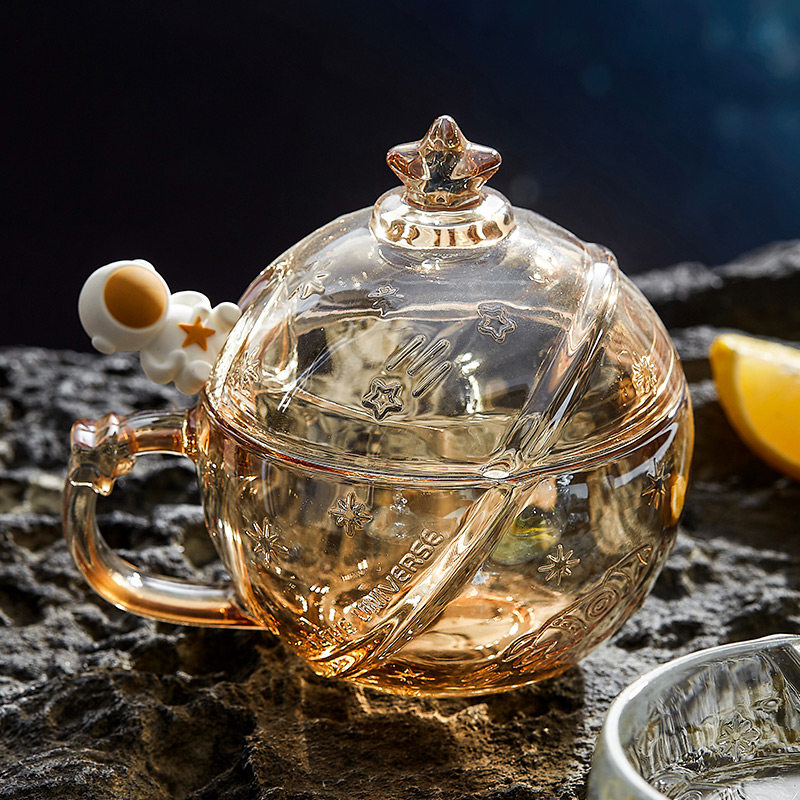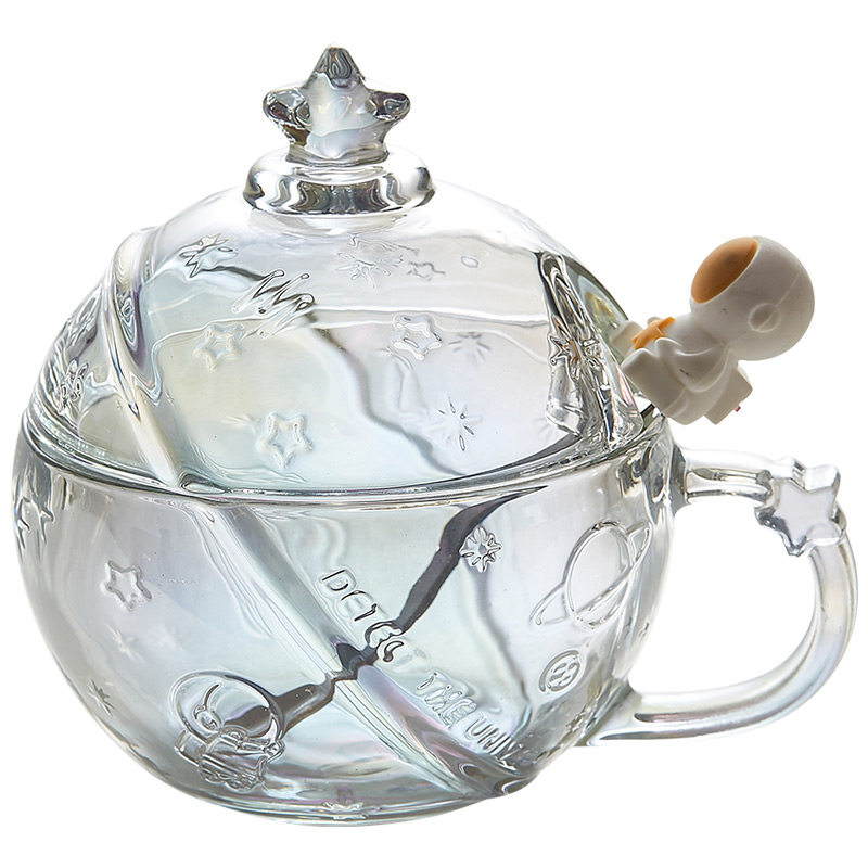 宇航员联名星球水杯少女心可爱牛奶杯耐热玻璃早餐杯带盖勺咖啡杯