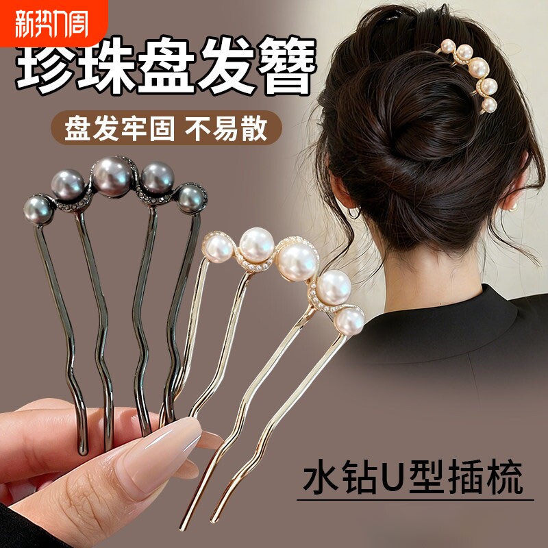 珍珠U型发簪女盘发神器2026新款高端发钗簪子后脑勺插梳发夹头饰