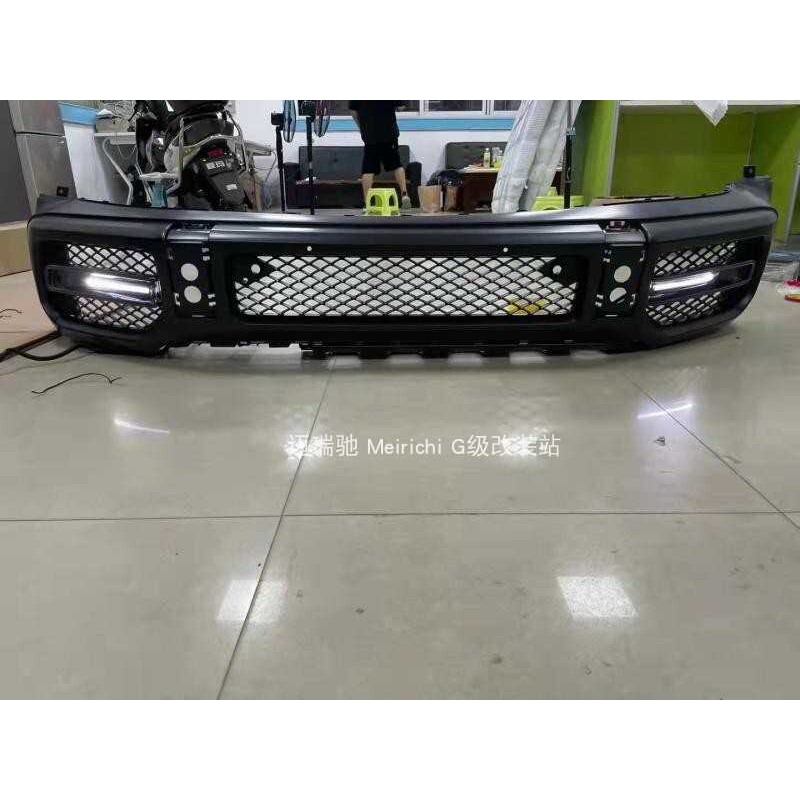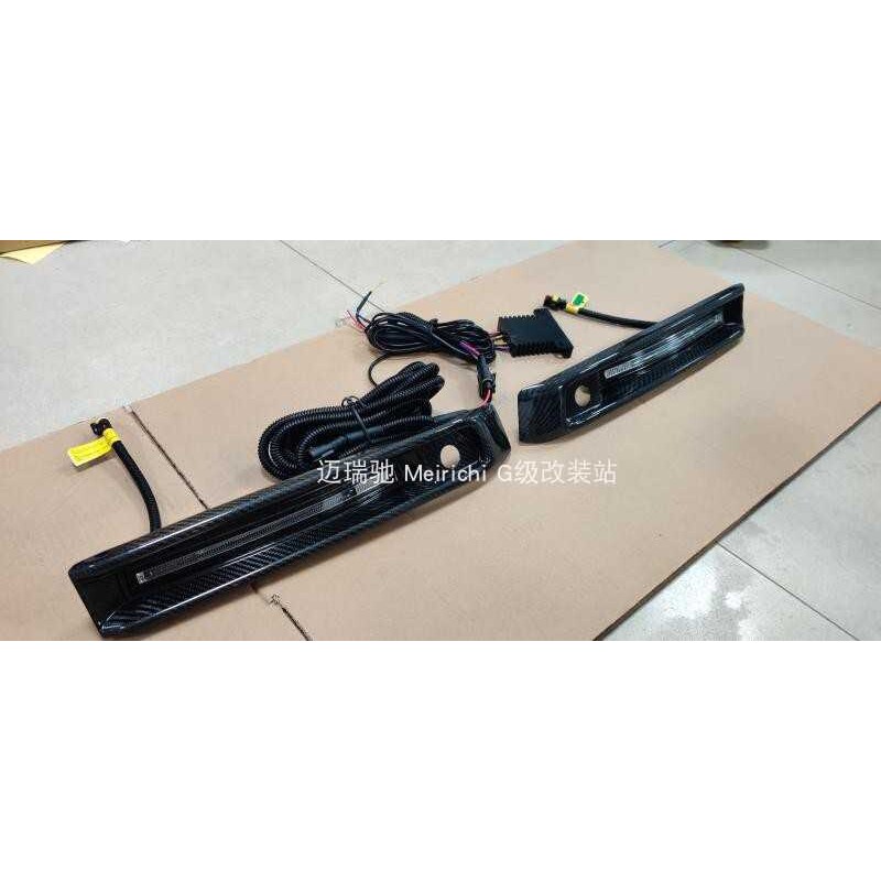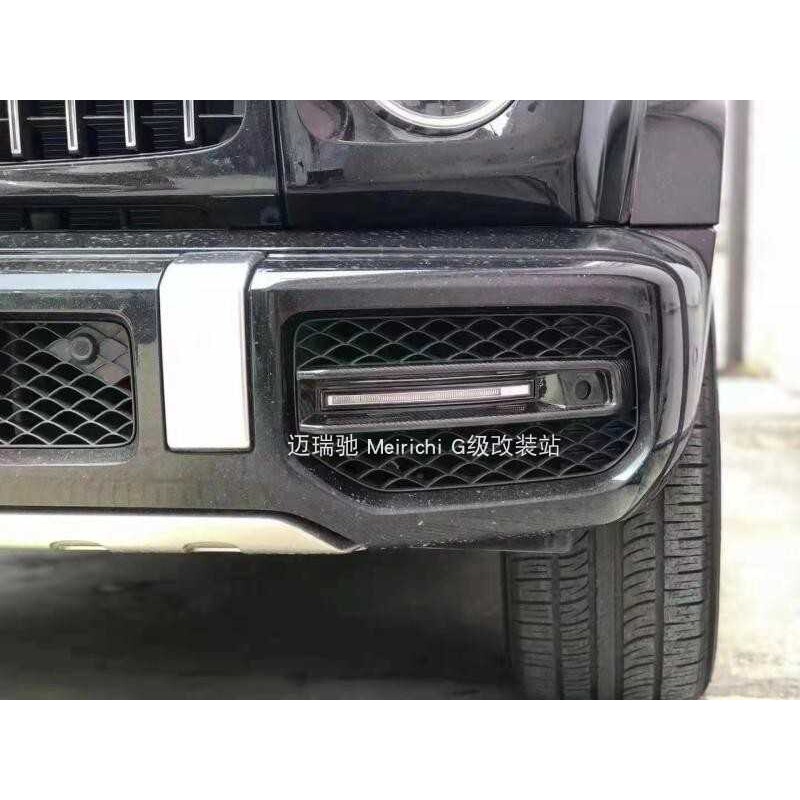 适用奔驰G63改装W464 G63前杠干碳纤维格栅带灯装饰条格栅日行灯