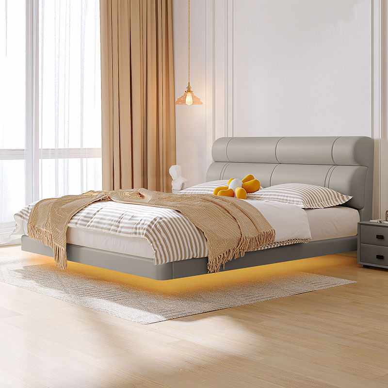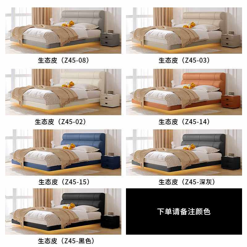 意式极简真皮床简约现代2024主卧室双人床高靠软包可储物皮艺大床