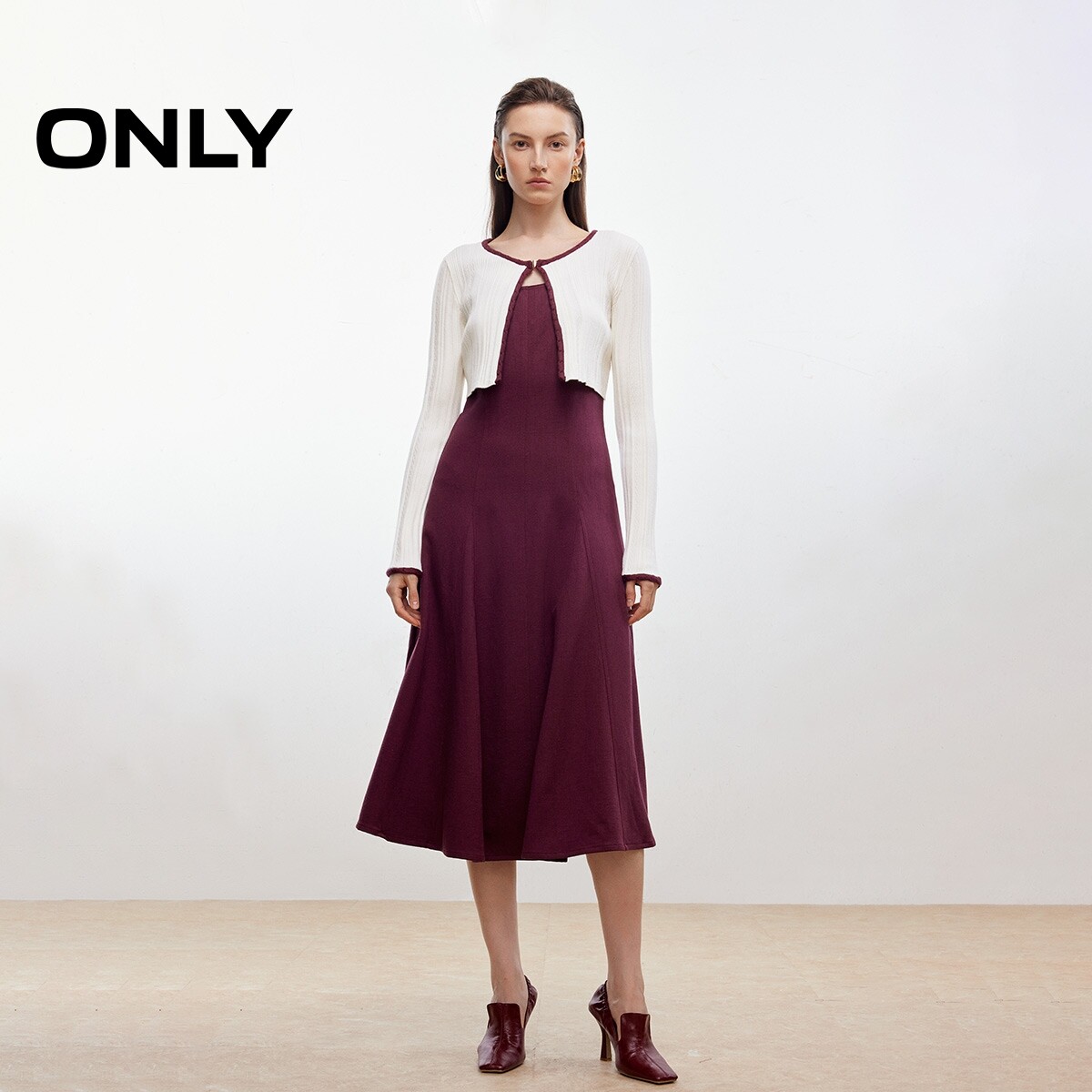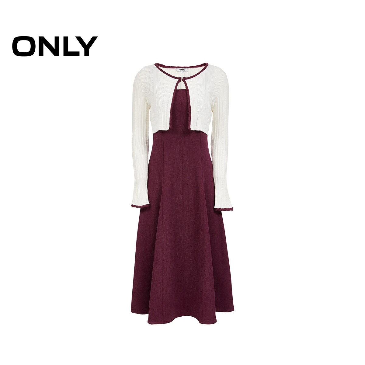 【ONLY奥莱】春季优雅显瘦针织上衣拼接背心裙中长裙套装连衣裙女
