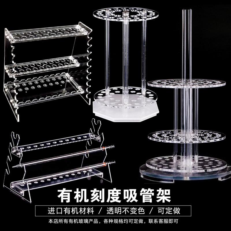 有机玻璃刻度吸管架18/32/42孔圆盘360°旋转有机玻璃移液管架