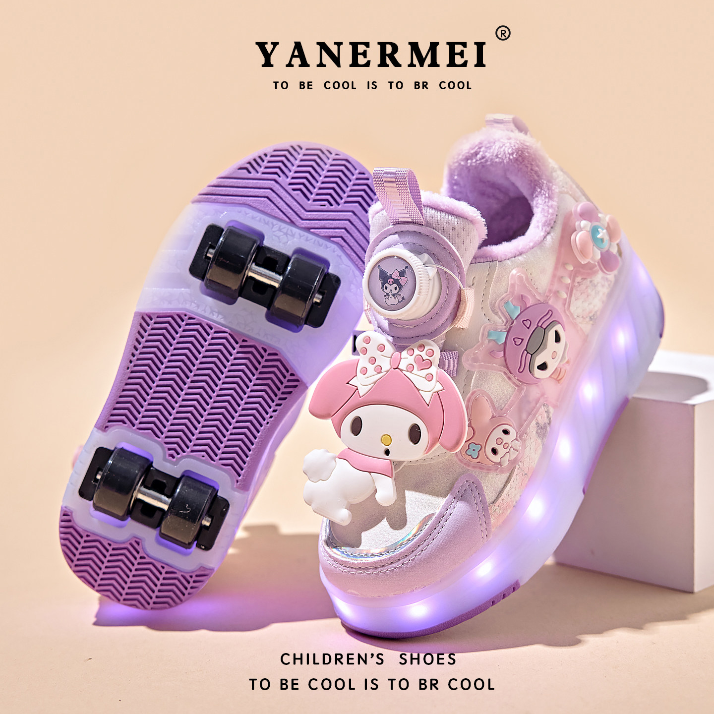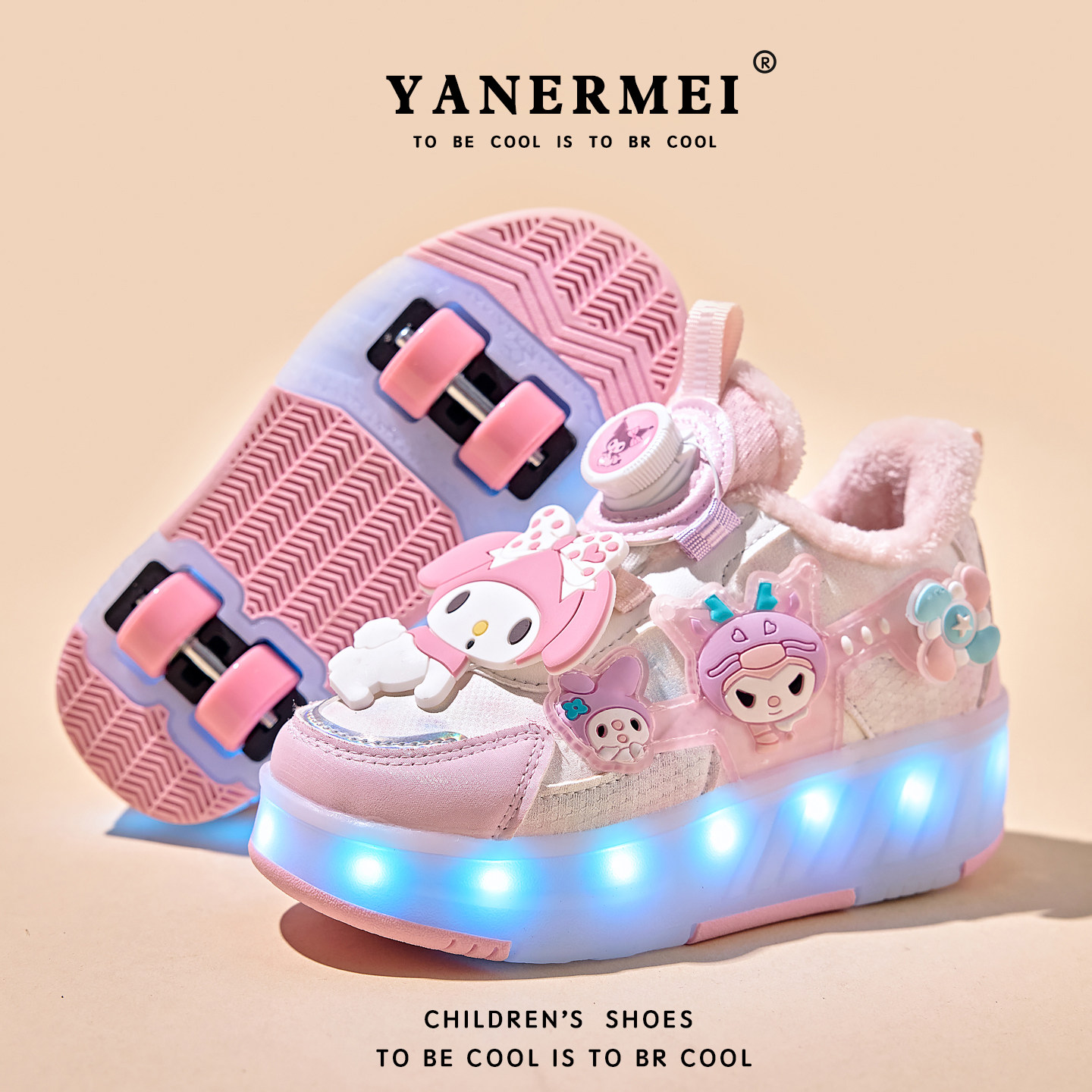库洛米女童暴走鞋秋冬加绒新款儿童四轮二棉溜冰滑轮鞋女孩可充电