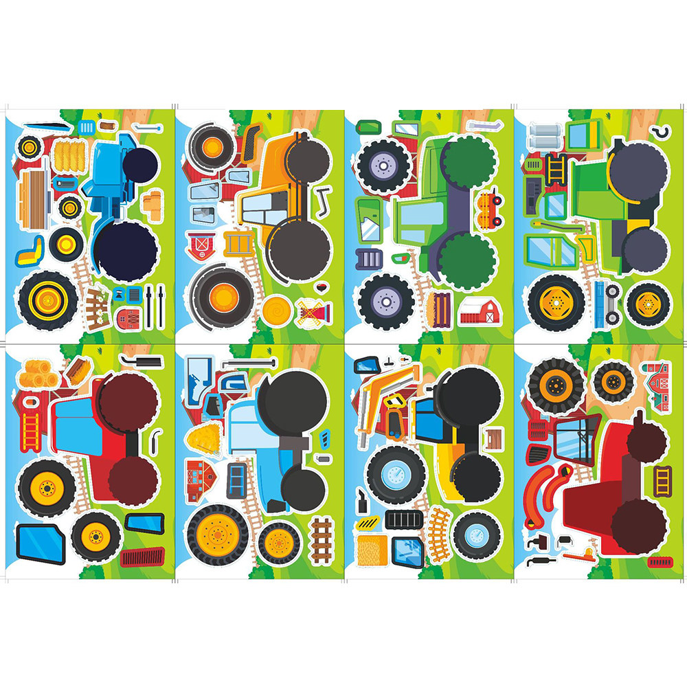8张拖拉机工程车拼图贴纸趣味涂鸦拼贴趣味创意益智儿童贴画自粘