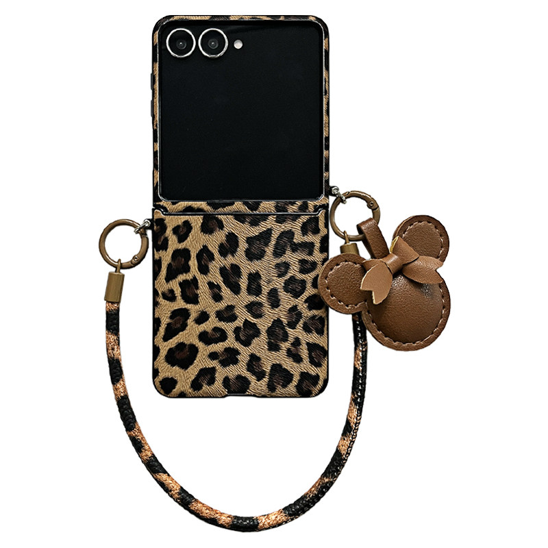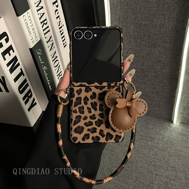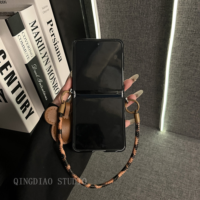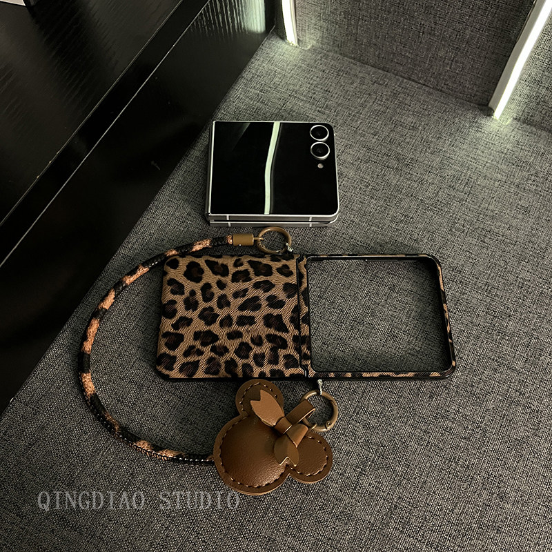 轻调 日韩ins高级棕豹纹公仔头手提绳适用于三星zflip7/6/5/4/GalaxyW25Flip手机壳新款折叠屏翻盖防摔保护套