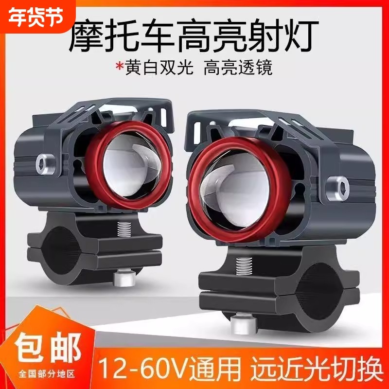 摩托车射灯黄白光led大灯电瓶车灯强光超亮改装铺路远近光灯