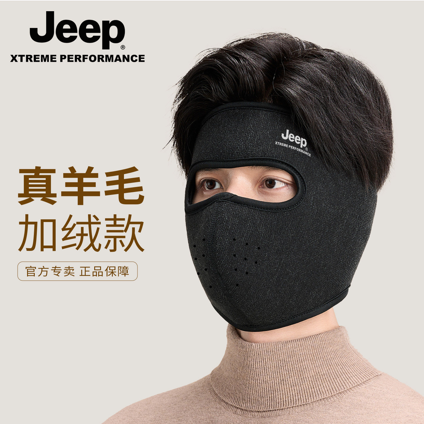 jeep吉普骑行羊毛面罩防风全脸男士冬季护耳朵保暖口罩耳包耳罩男