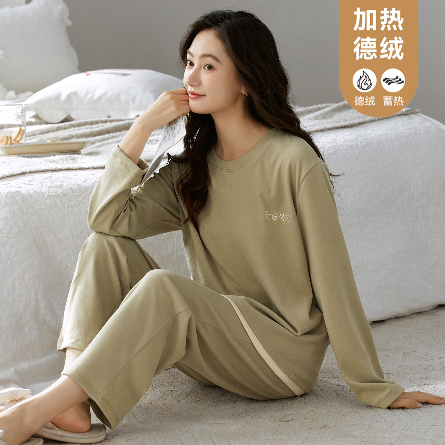 睡衣春秋季女款保暖德绒大码套装2025新款女士长袖套头薄绒家居服