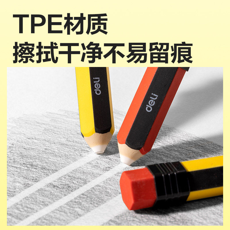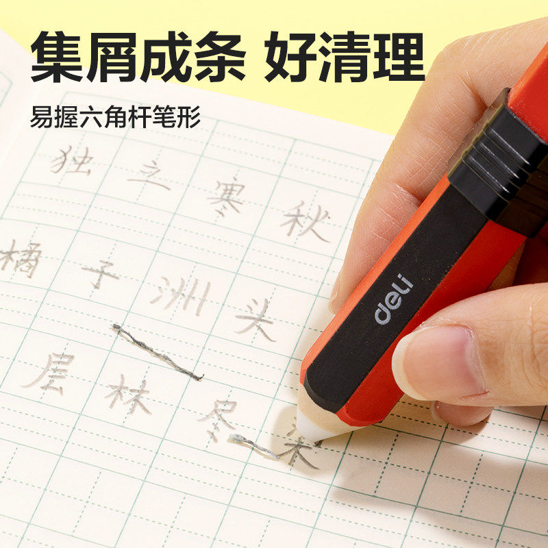 Deli/得力笔形橡皮擦学生专用无屑超干净集屑橡皮擦无毒幼儿园用