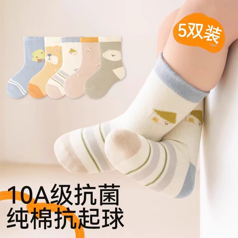 纯棉童袜春秋款夏季薄款防臭不起球男女袜子全棉中筒袜时尚儿童袜