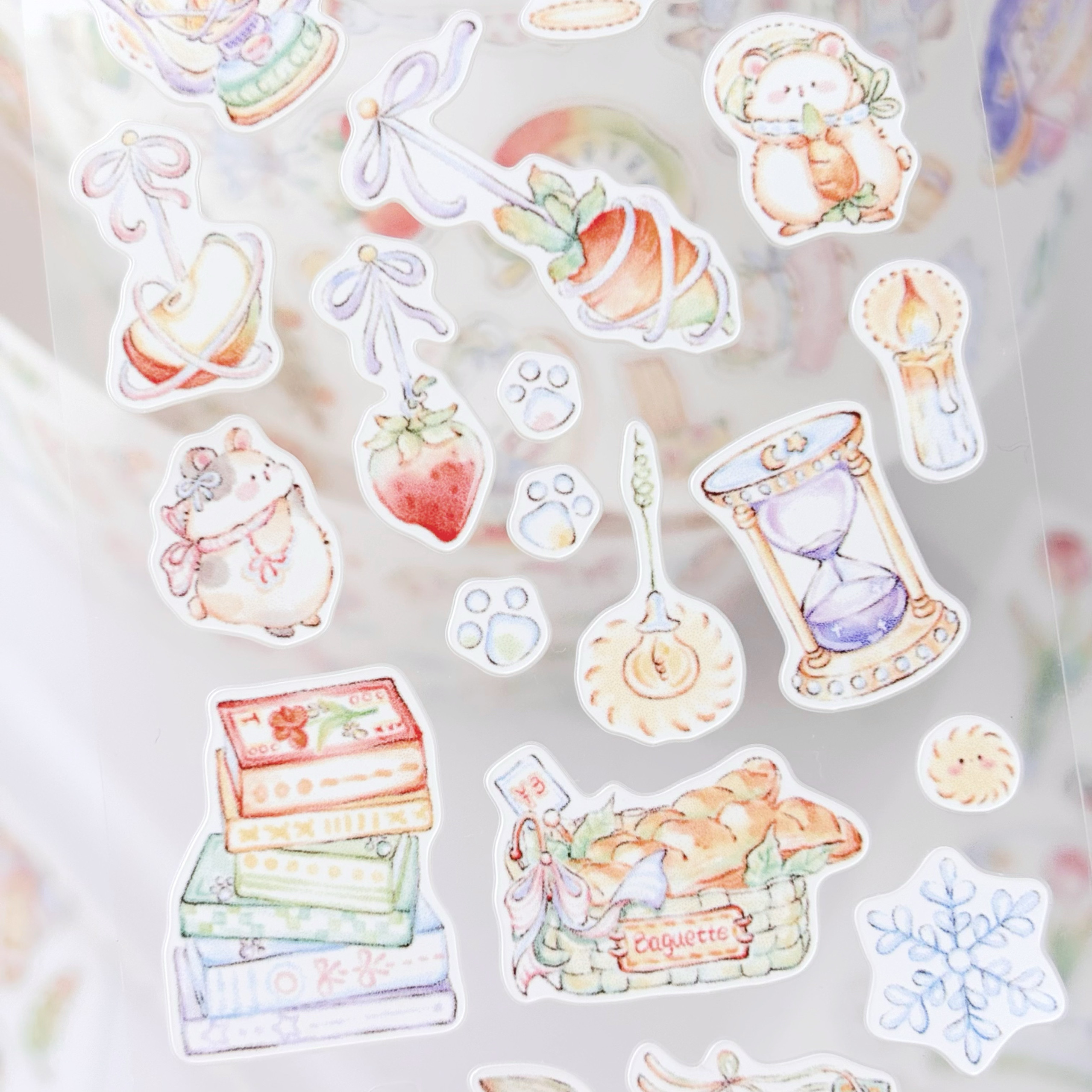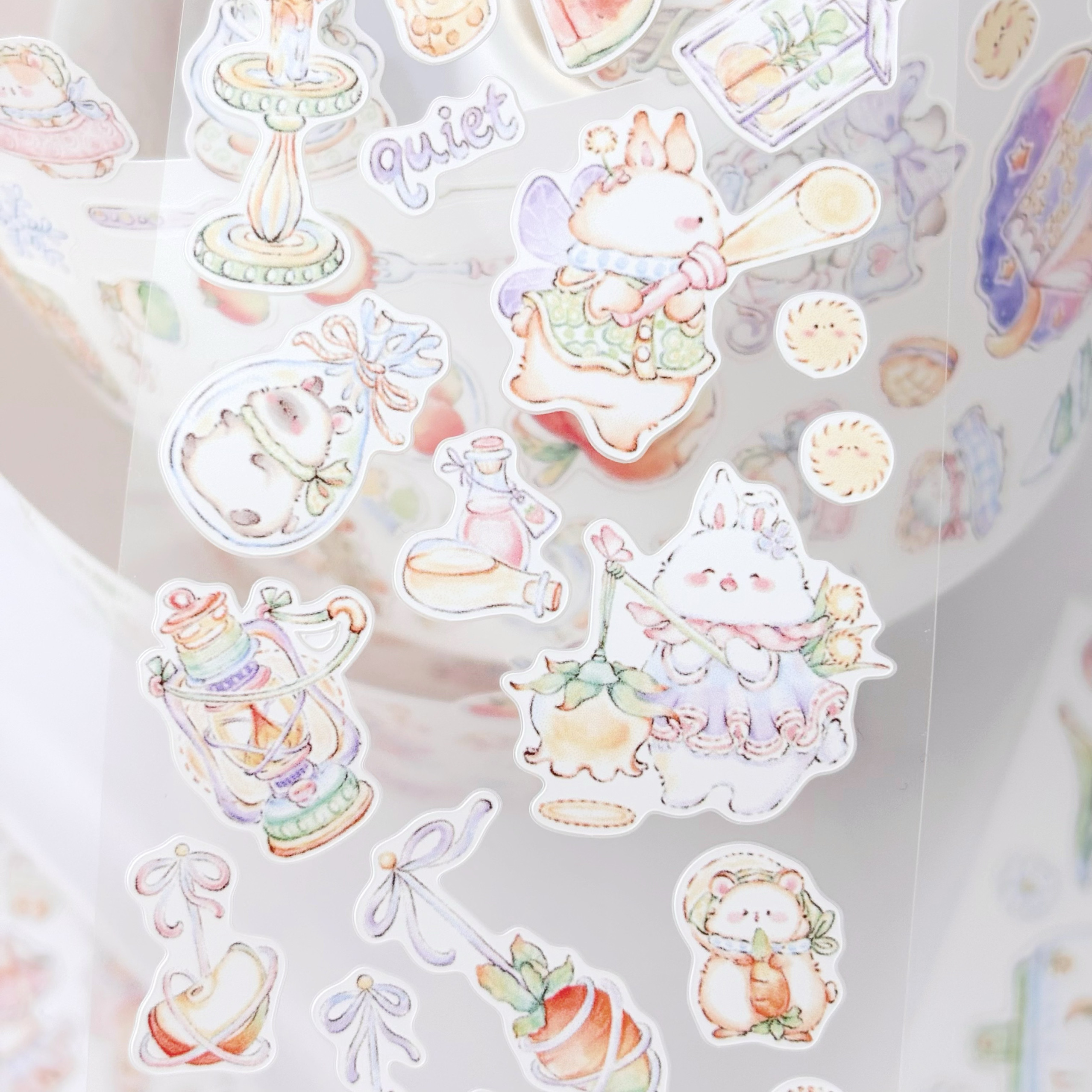 《vol.1绒尾工坊》模切贴纸卷|花夭studio 原创可爱兔兔仓鼠花朵