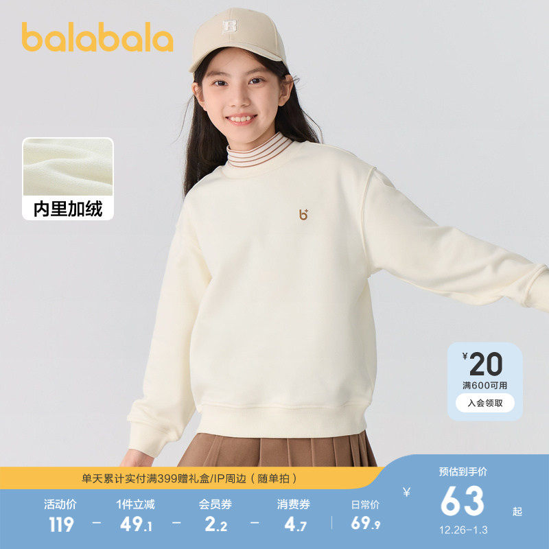 巴拉巴拉童装男童卫衣儿童秋冬上衣加绒女童高领保暖舒适百搭时尚