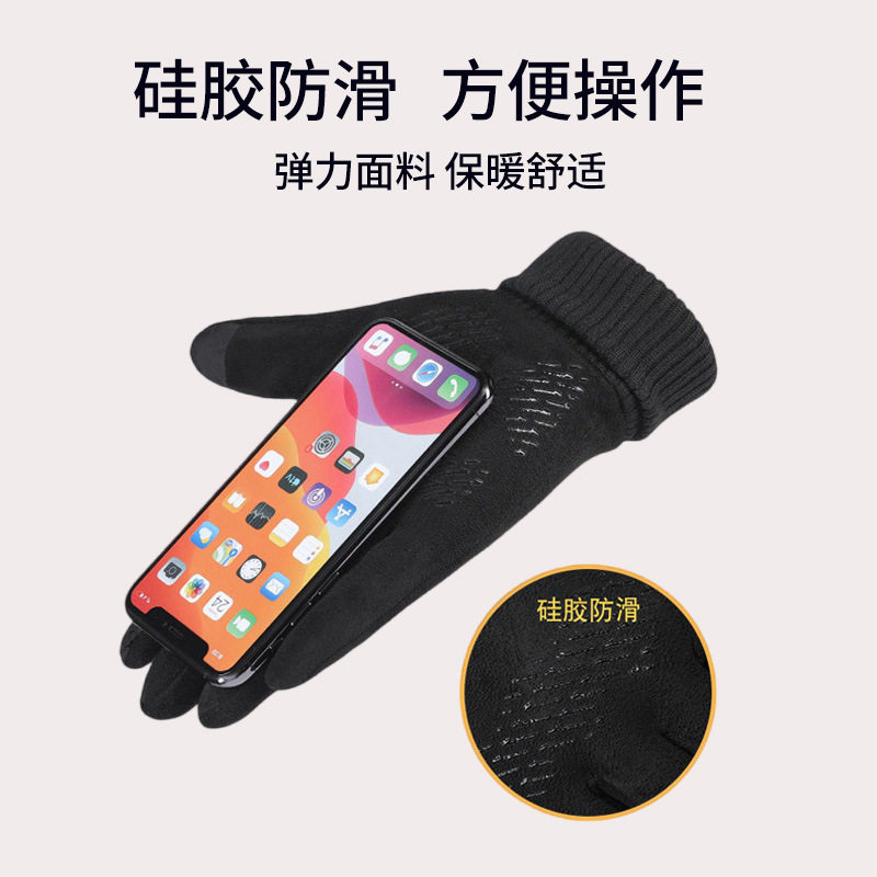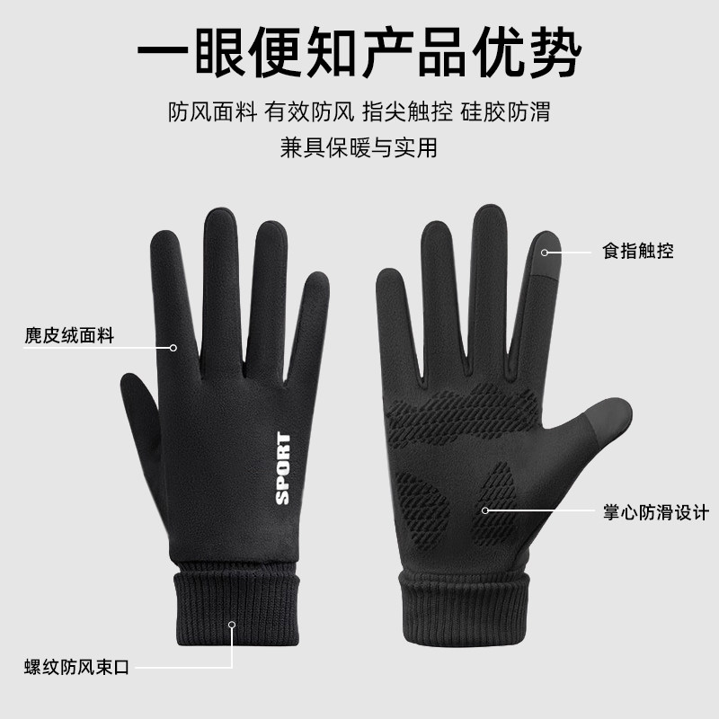 麂皮绒手套男女防风秋冬季加绒保暖防寒触屏开车骑手送外卖快递