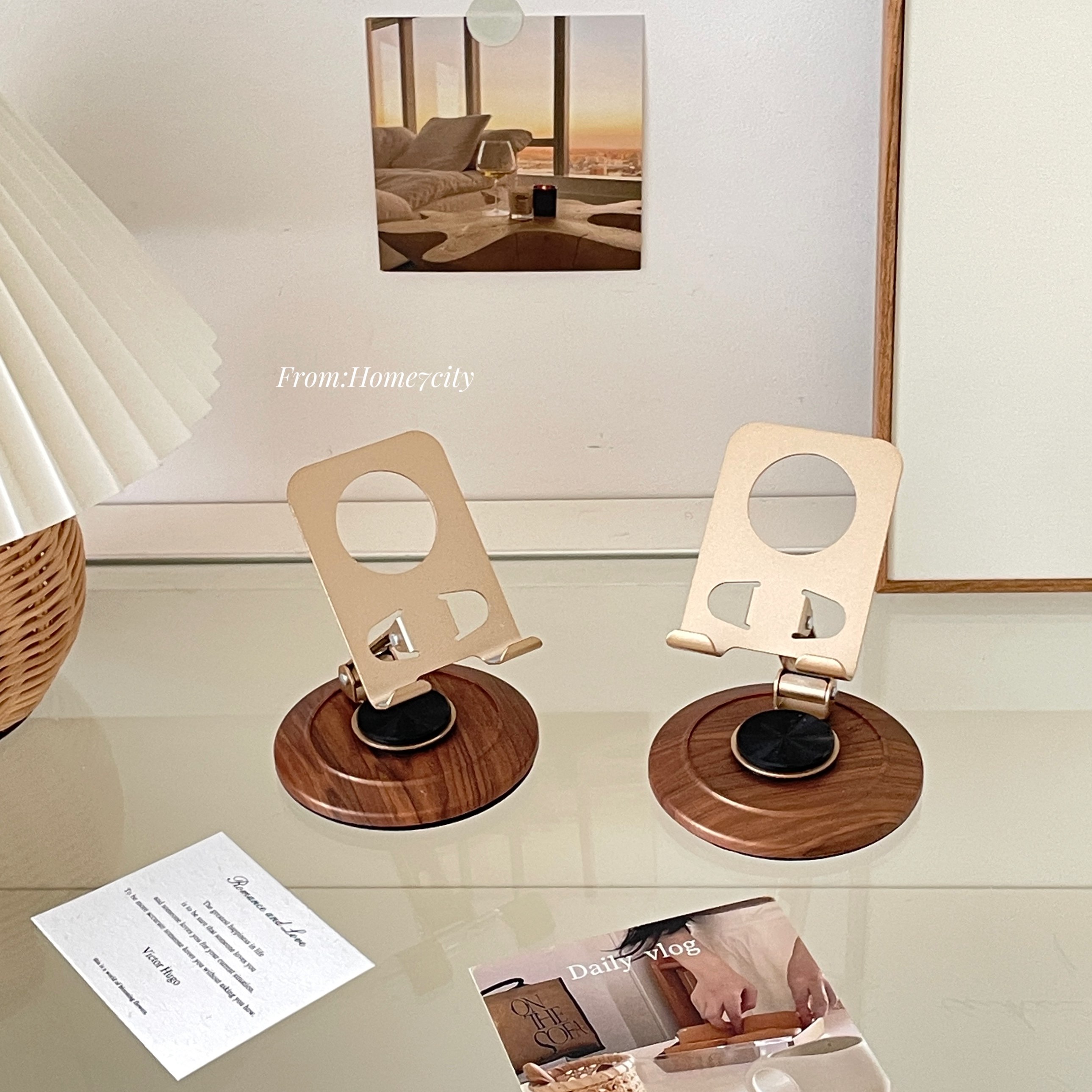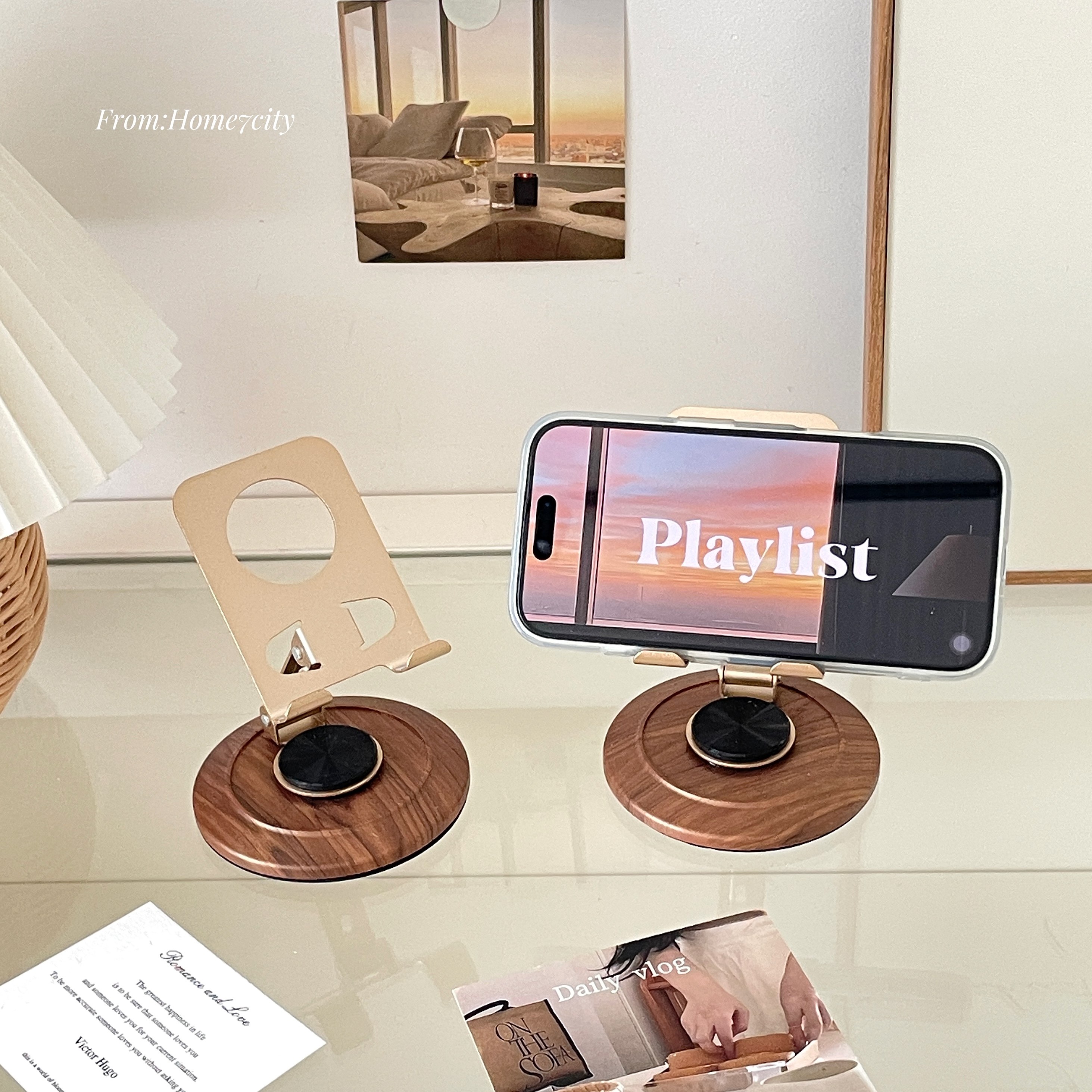 高级感木纹底座金属手机支架可折叠可旋转桌面追剧直播支架高颜值